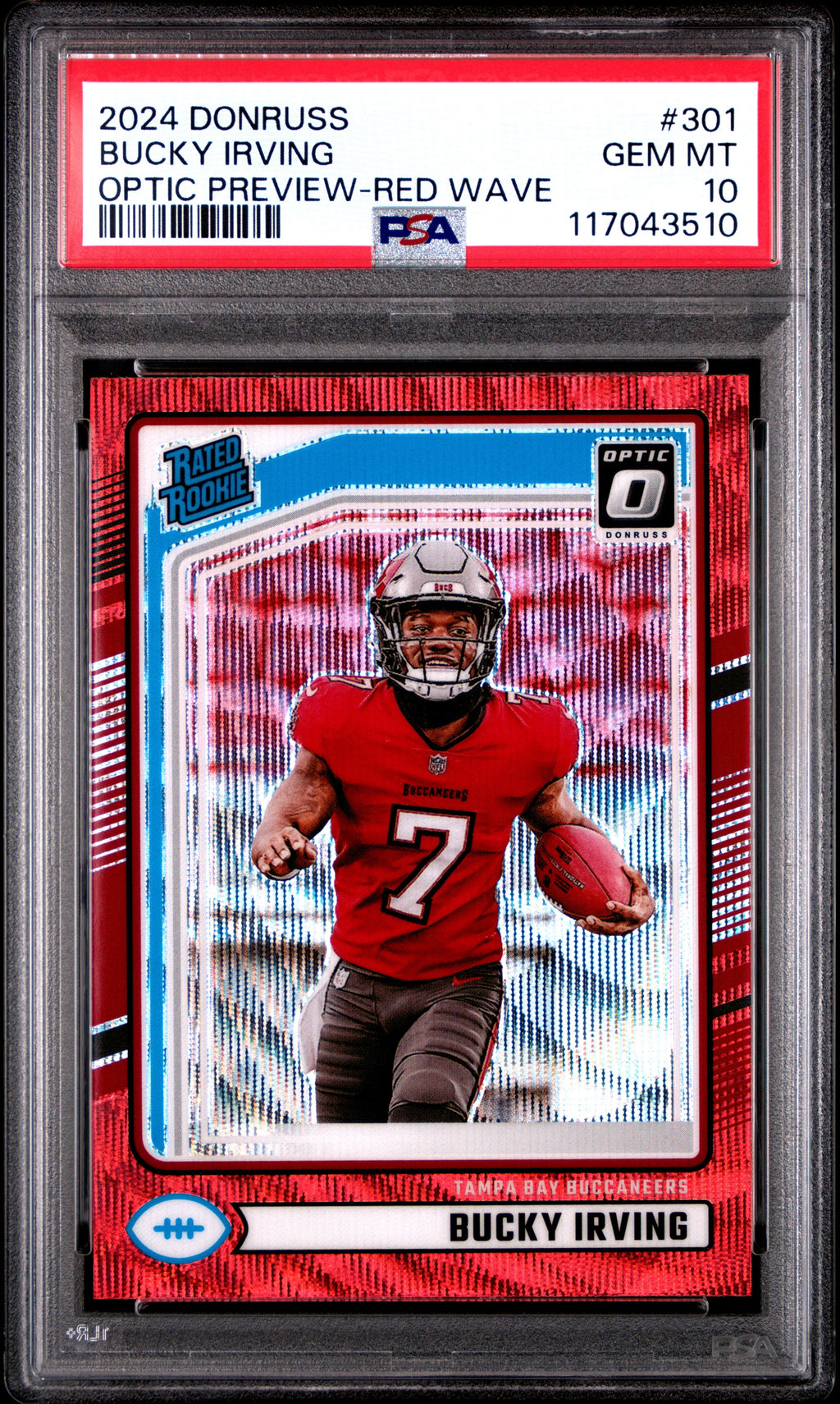 Graded 2024 Panini Donruss Bucky Irving #301 Optic Preview Red Wave Rookie RC Football Card PSA 10 Gem Mint
