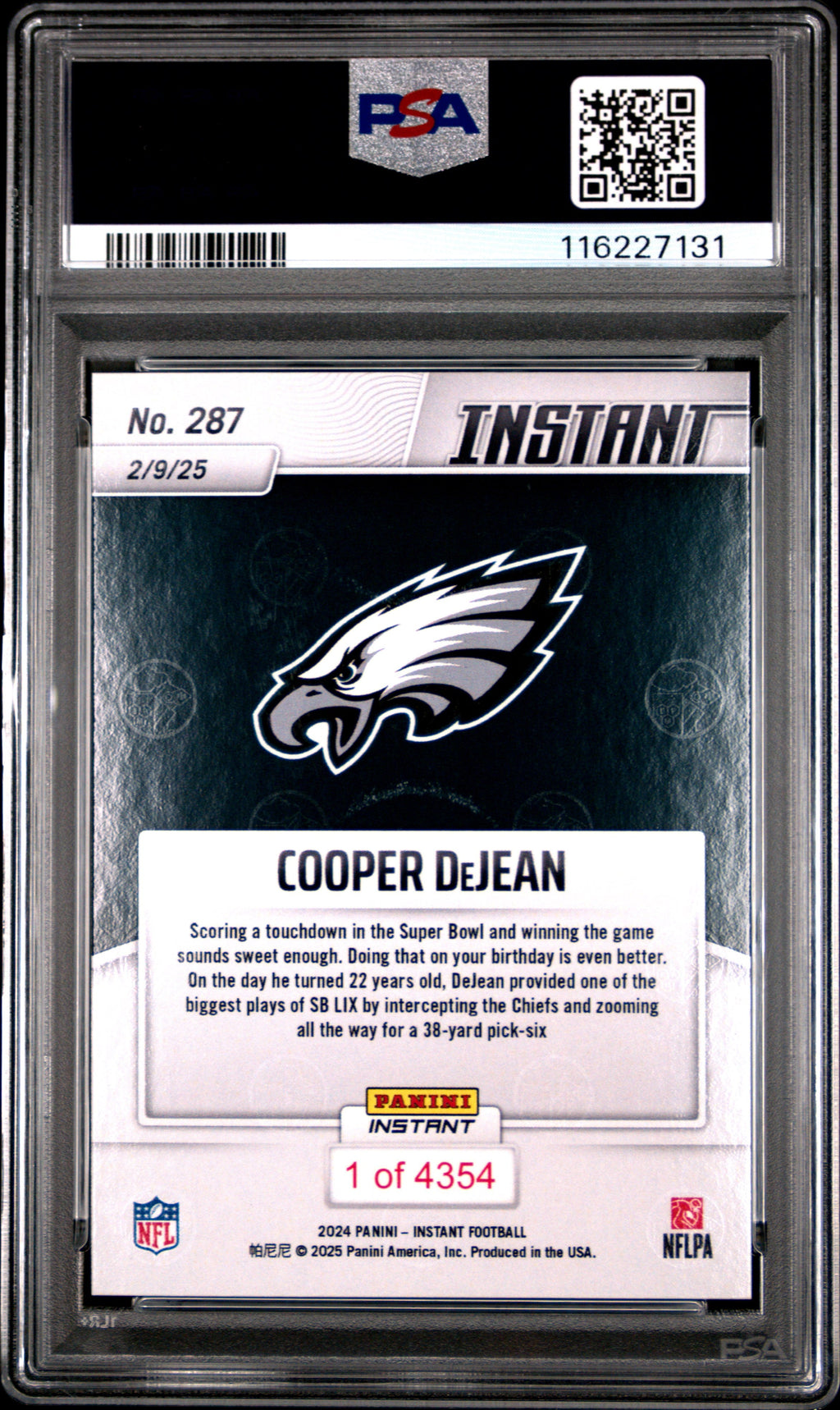 Graded 2024 Panini Instant NFL Cooper DeJean #287 Rookie RC Football Card PSA 10 Gem Mint