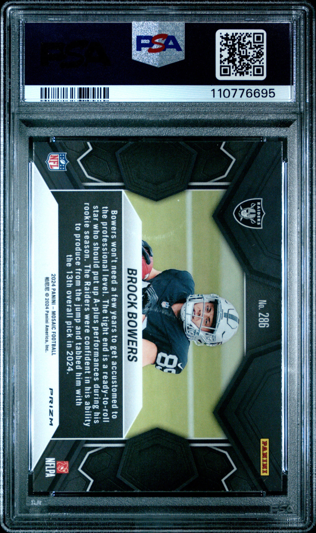 Graded 2024 Panini Mosaic Brock Bowers #286 Green Rookie RC Football Card PSA 10 Gem Mint