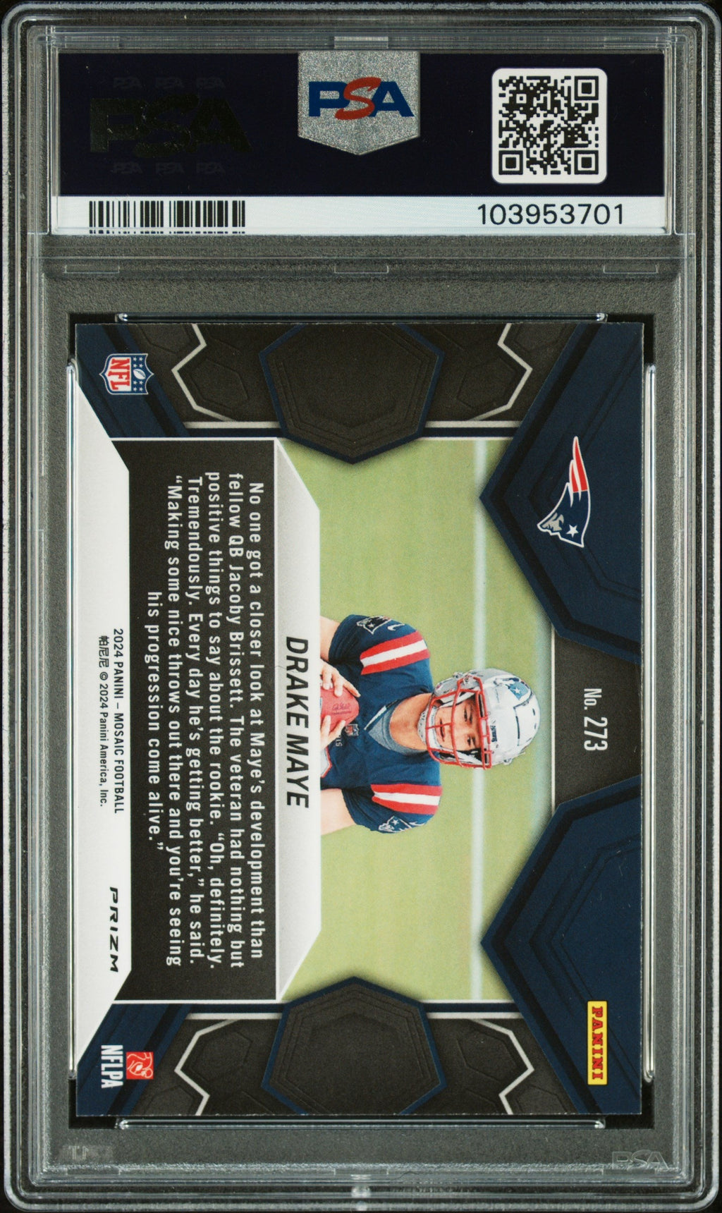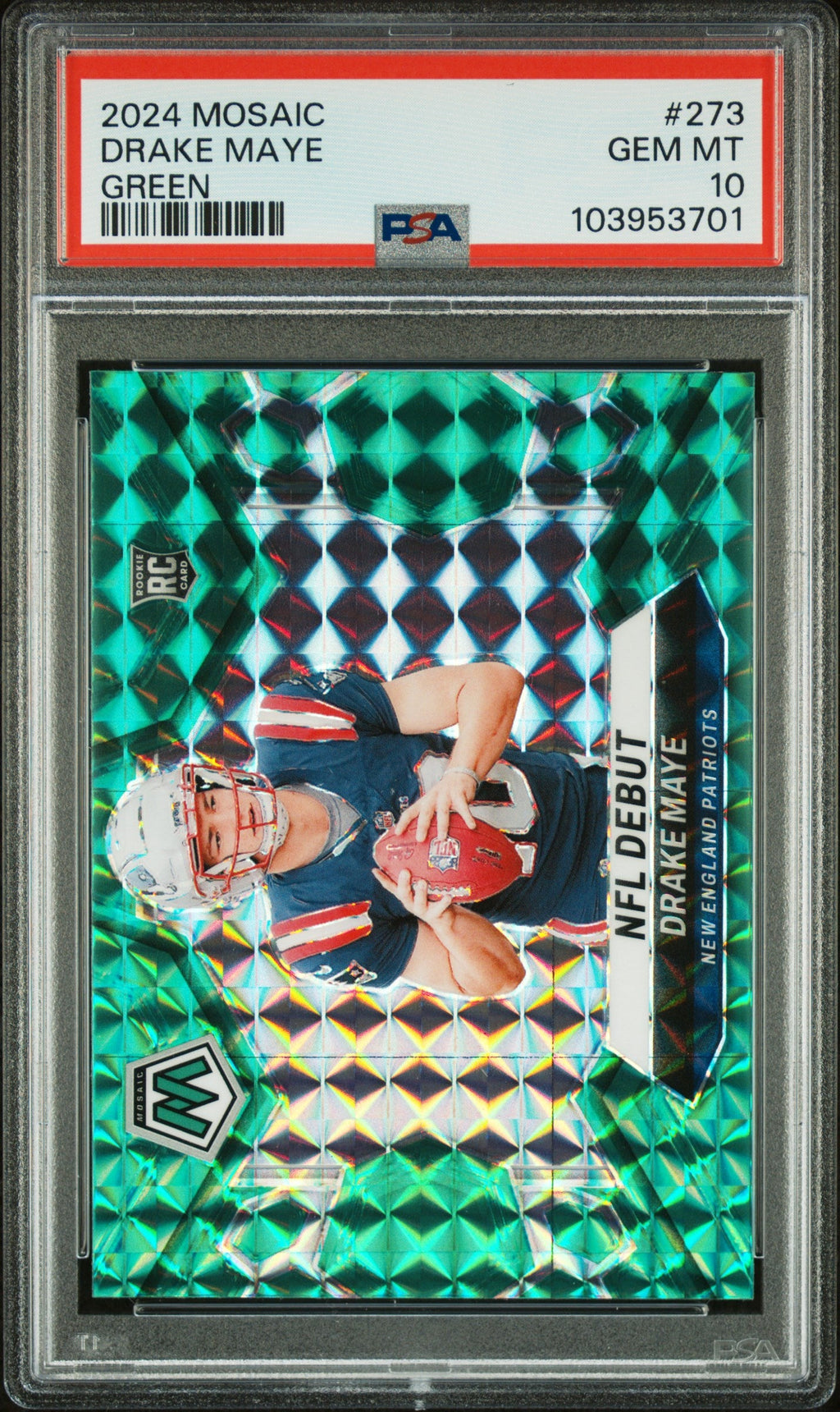 Graded 2024 Panini Mosaic Drake Maye #273 Green Rookie RC Football Card PSA 10 Gem Mint