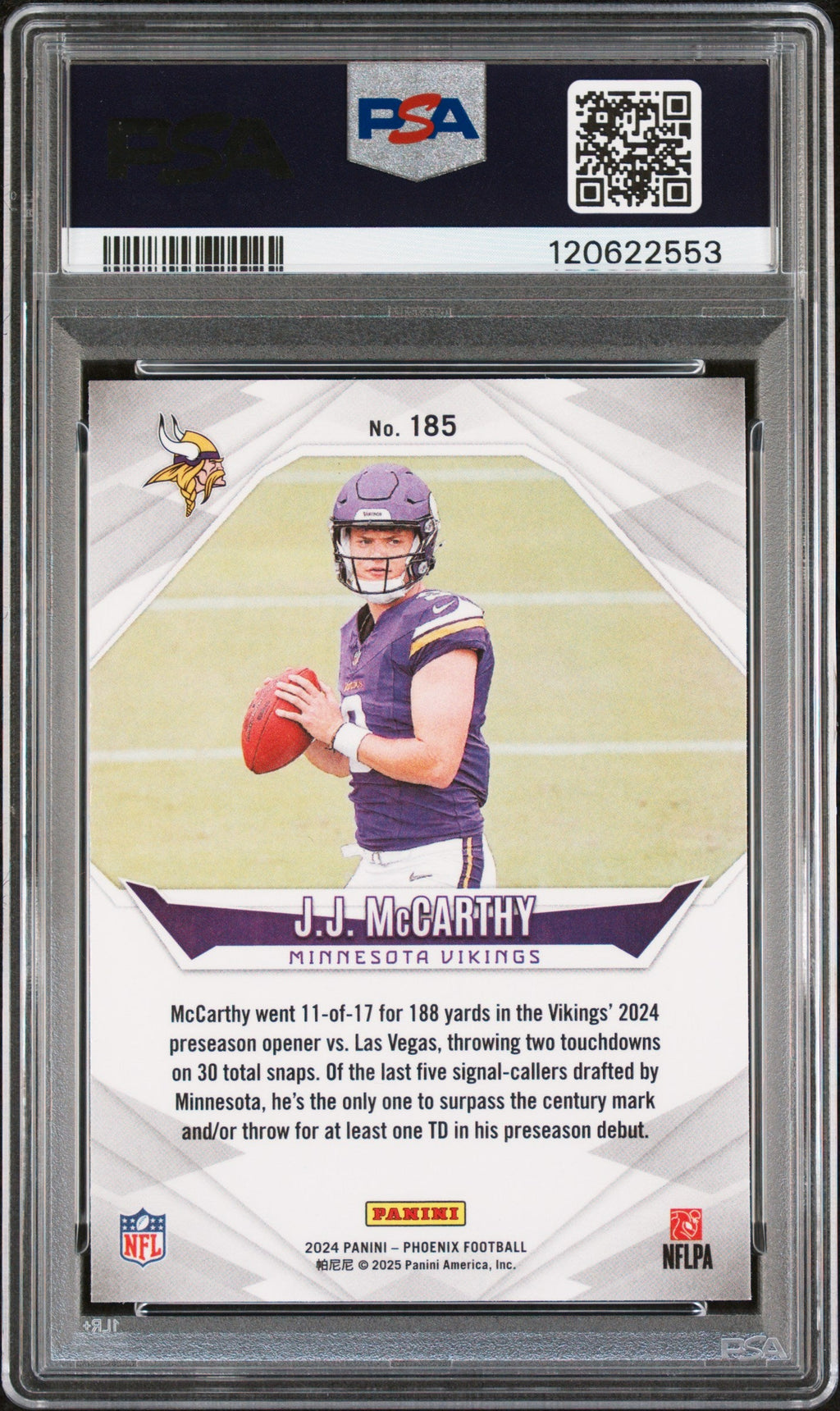 Graded 2024 Panini Phoenix JJ McCarthy #185 Rookie RC Football Card PSA 9 Mint