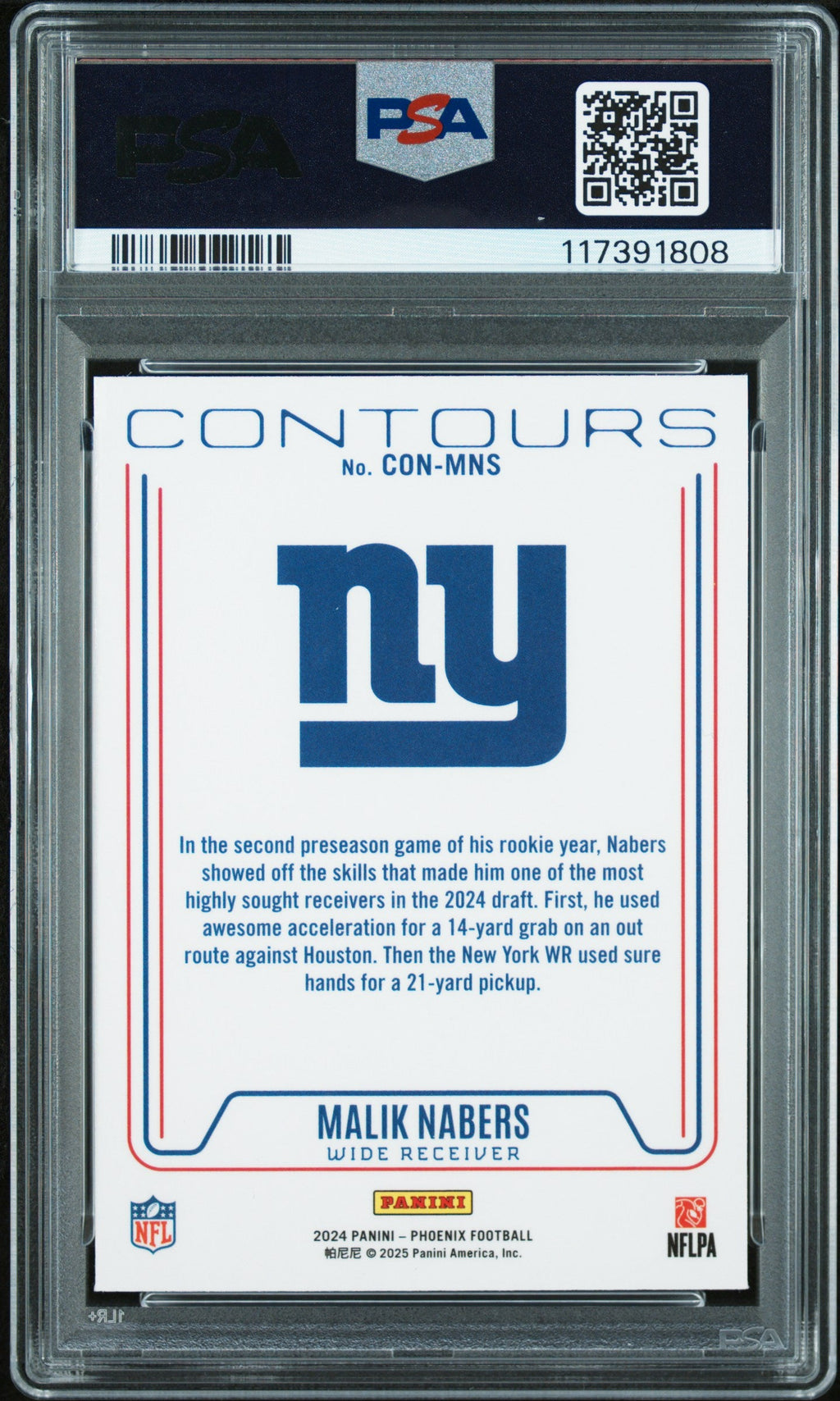 Graded 2024 Panini Phoenix Malik Nabers #CONMNS Contours Wave Rookie RC Football Card PSA 10 Gem Mint