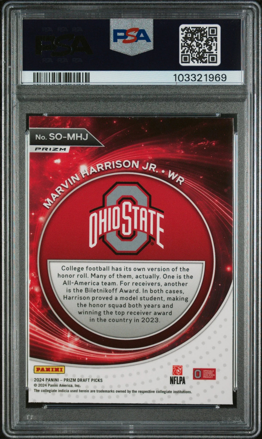 Graded 2024 Panini Prizm Draft Picks Marvin Harrison Jr #SOMHJ Student Orientation Red Ice Rookie RC Football Card PSA 10 Gem Mint