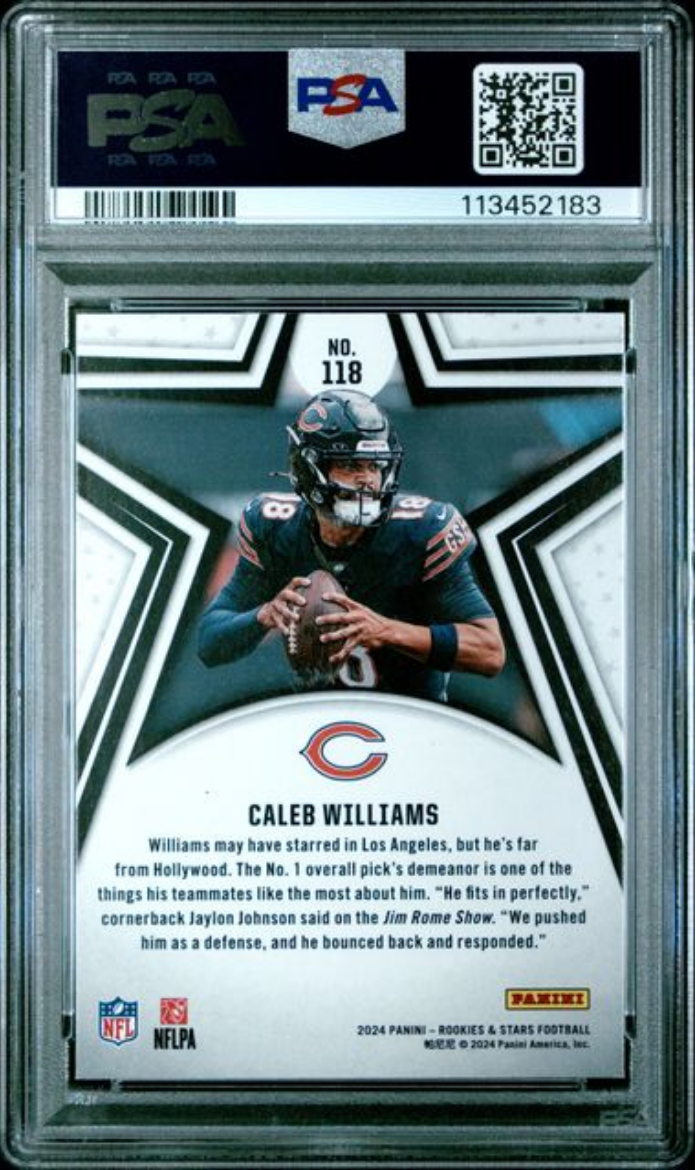 Graded 2024 Panini Rookies & Stars Caleb Williams #118 Rookie RC Football Card PSA 10 Gem Mint