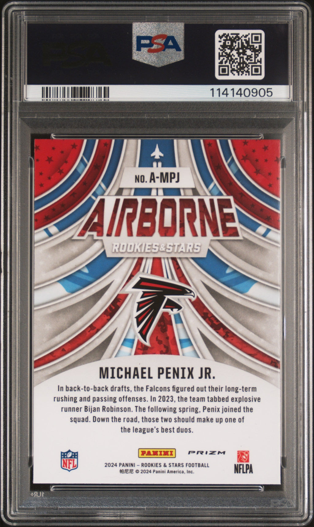Graded 2024 Panini Rookies & Stars Michael Penix Jr #AMPJ Airborne Red Plaid Rookie RC Football Card PSA 10 Gem Mint