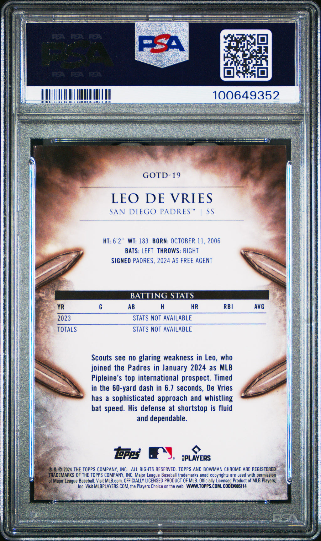 Graded 2024 Topps Bowman Chrome Leo De Vries #19 Gladiators of the Diamond Rookie RC Baseball Card PSA 10 Gem Mint