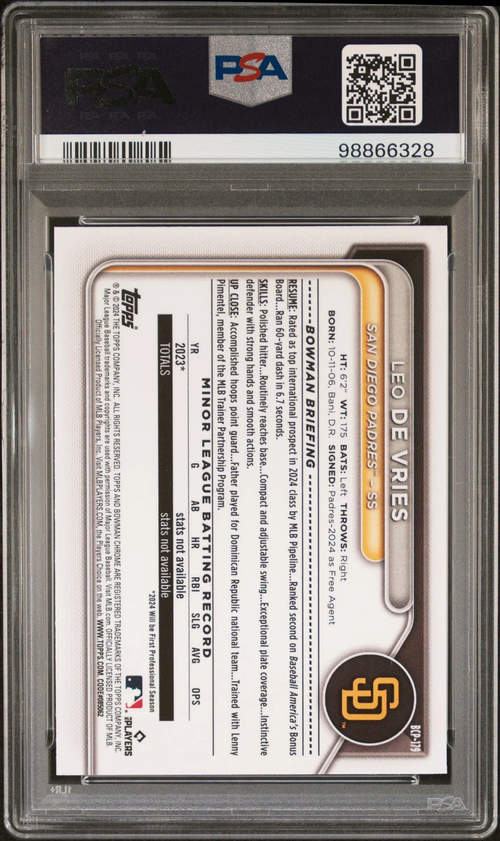 Hall of Fame Sports MemorabiliaSKU: 2024-TBC-LDV-BCP179-PROSPECTS-PSA-10