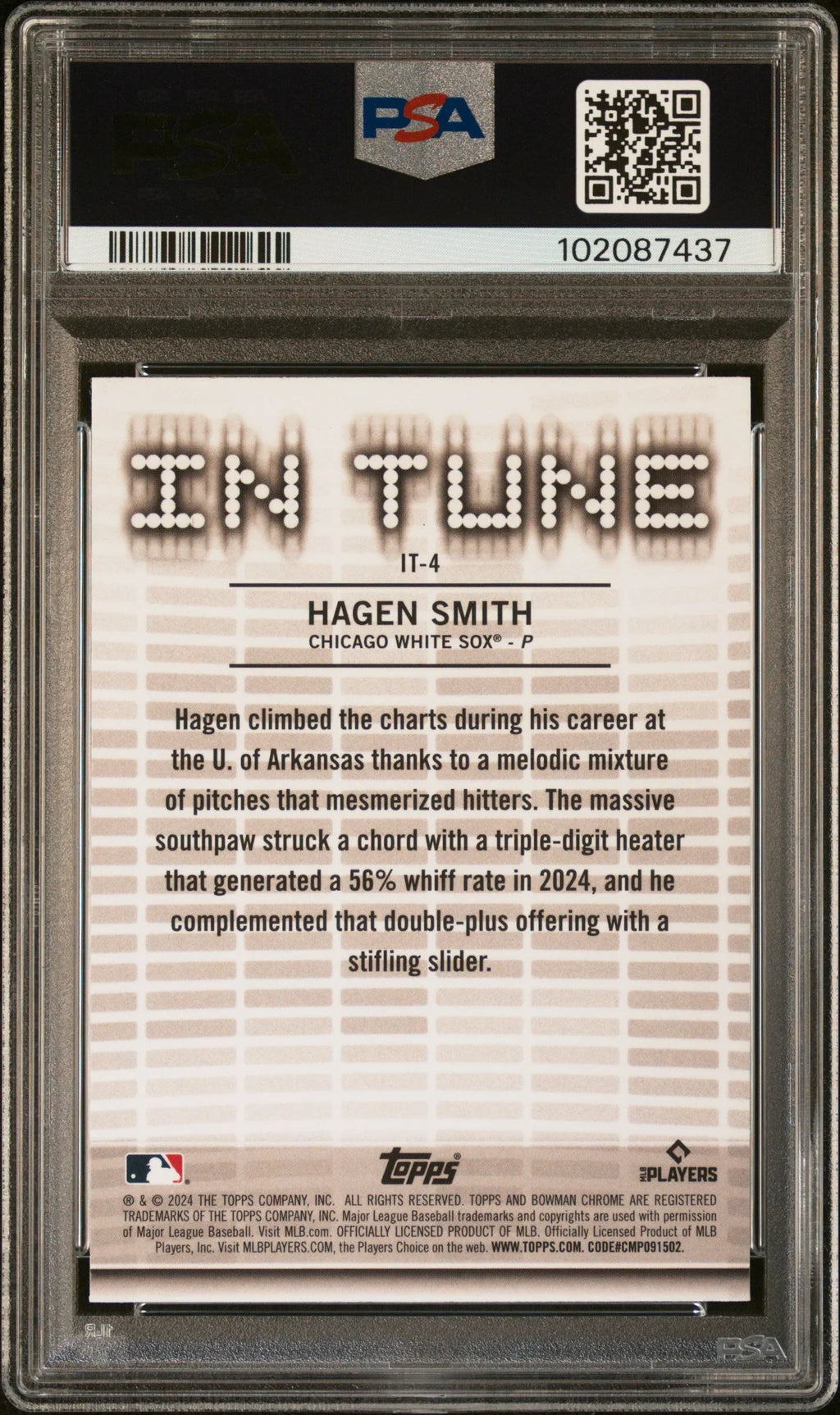 Graded 2024 Topps Bowman Draft Hagen Smith #IT4 In Tune Rookie RC Baseball Card PSA 10 Gem Mint