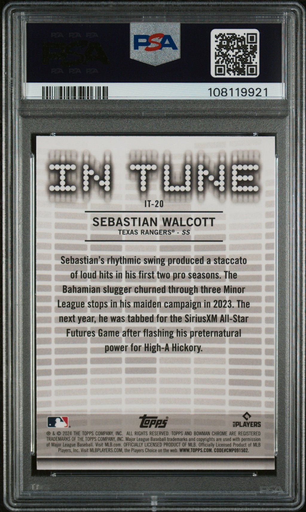 Graded 2024 Topps Bowman Draft Sebastian Walcott #IT20 In Tune Rookie RC Baseball Card PSA 10 Gem Mint