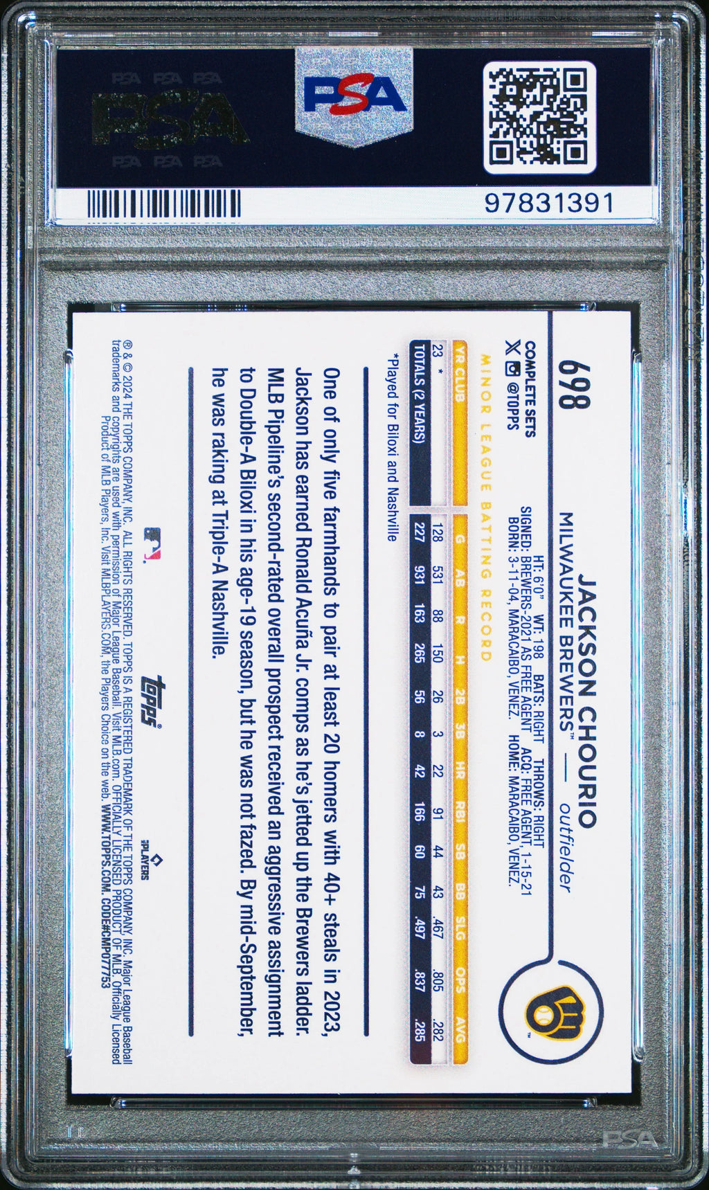 Graded 2024 Topps Jackson Chourio #698 ASG Exclusive Rookie RC Baseball Card PSA 10 Gem Mint