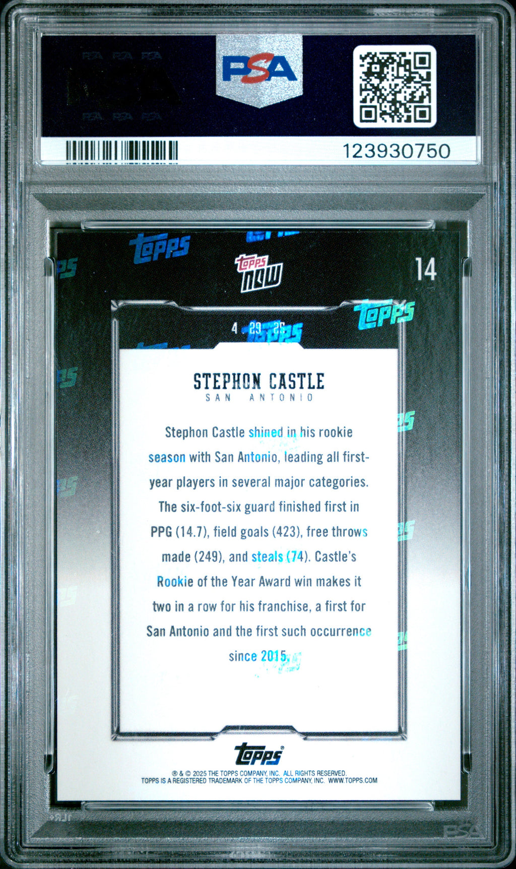 Graded 2024 Topps Now Stephon Castle #14 Rookie RC Basketball Card PSA 10 Gem Mint