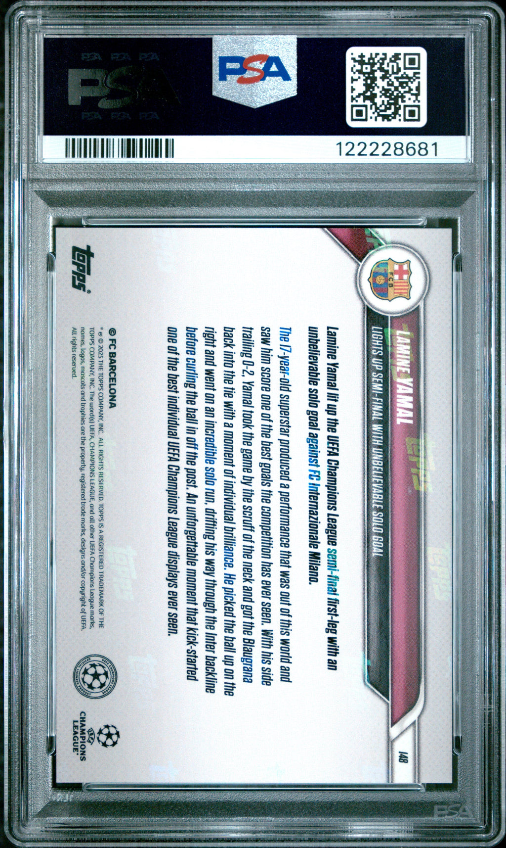 Graded 2024 Topps Now UCL Lamine Yamal #148 Orange Foil /25 Rookie RC Soccer Card PSA 10 Gem Mint