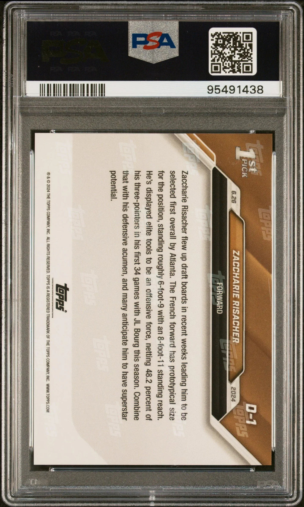 Graded 2024 Topps Now Zaccharie Risacher #D1 Draft Rookie RC Basketball Card PSA 9 Mint