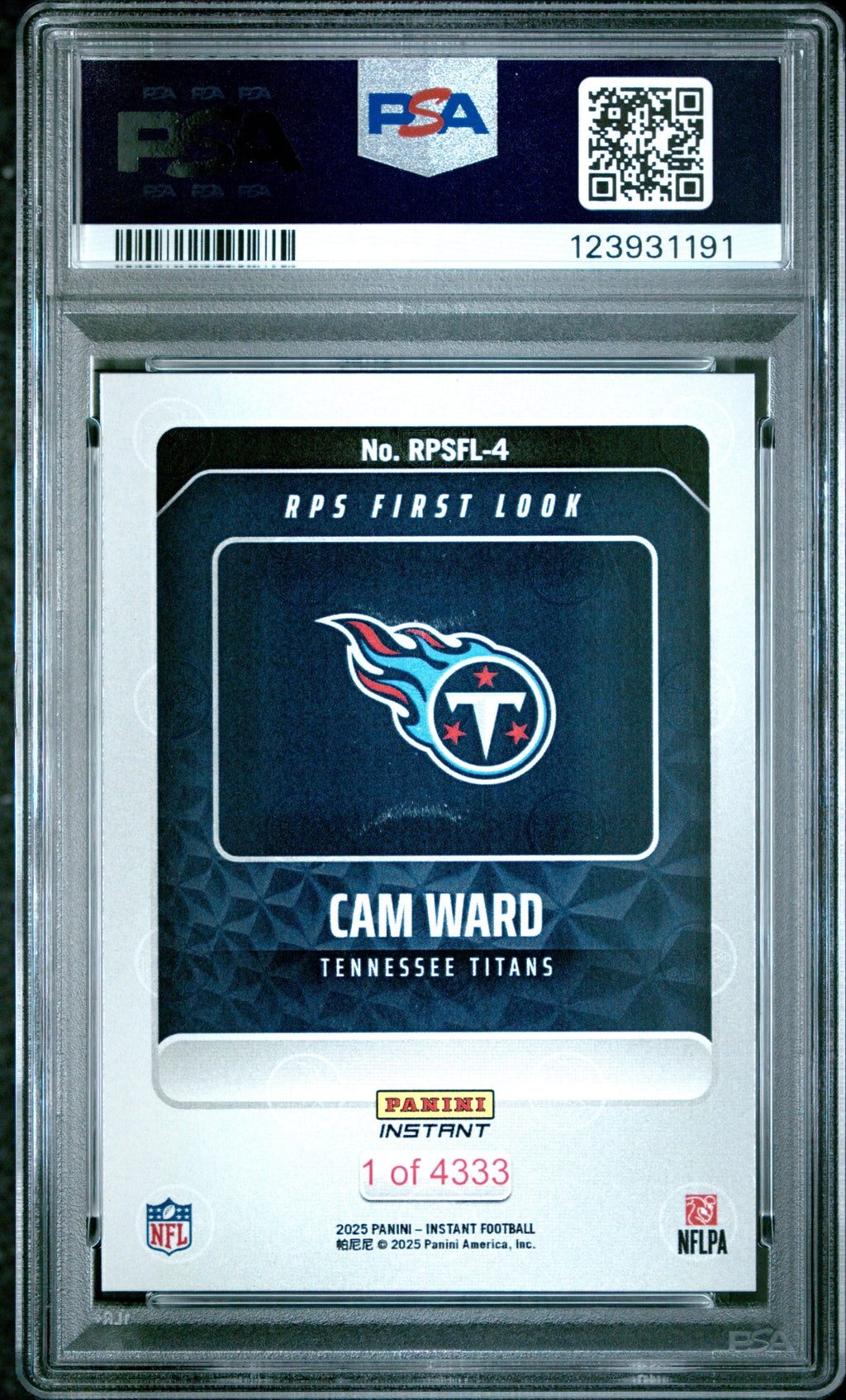 Graded 2025 Panini Instant Cam Ward #RPSFL4 RPS First Look Rookie RC Football Card PSA 9 Mint