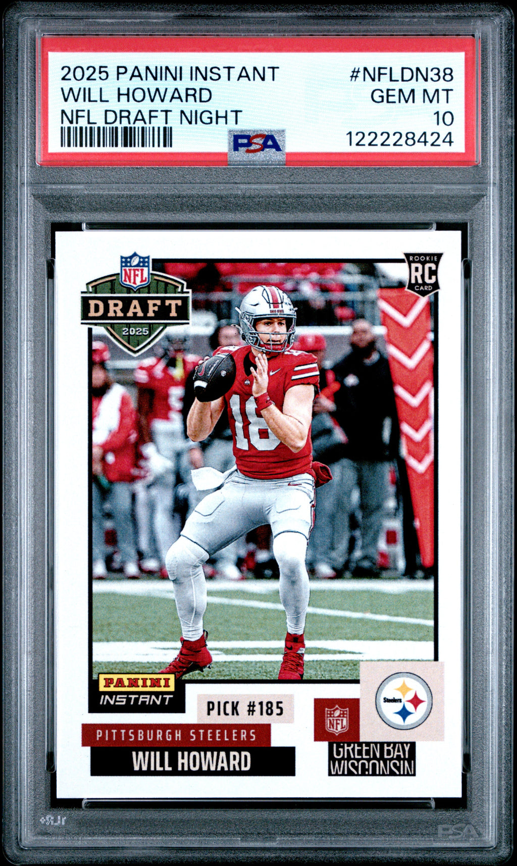 Graded 2025 Panini Instant Will Howard #NFLDN38 NFL Draft Night Rookie RC Football Card PSA 10 Gem Mint
