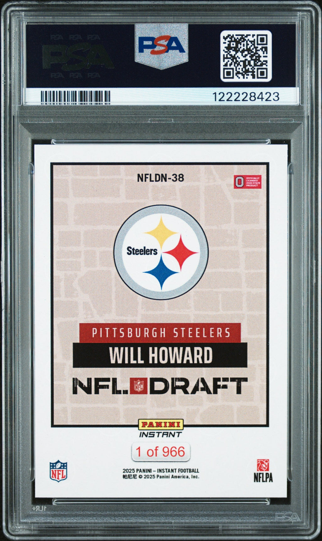 Graded 2025 Panini Instant Will Howard #NFLDN38 NFL Draft Night Rookie RC Football Card PSA 9 Mint