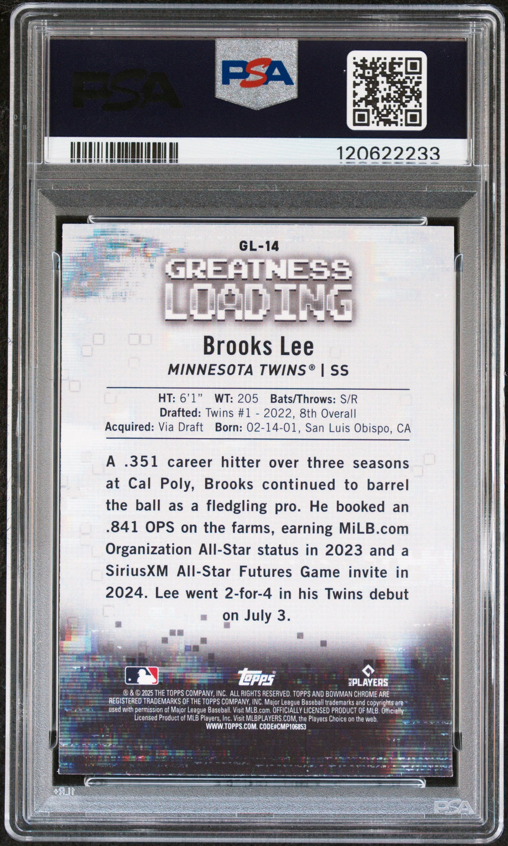 Graded 2025 Topps Bowman Brooks Lee #GL14 Greatness Loading Rookie RC Baseball Card PSA 10 Gem Mint