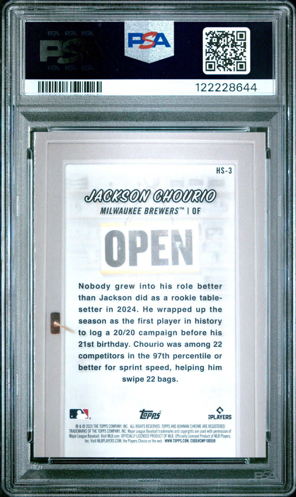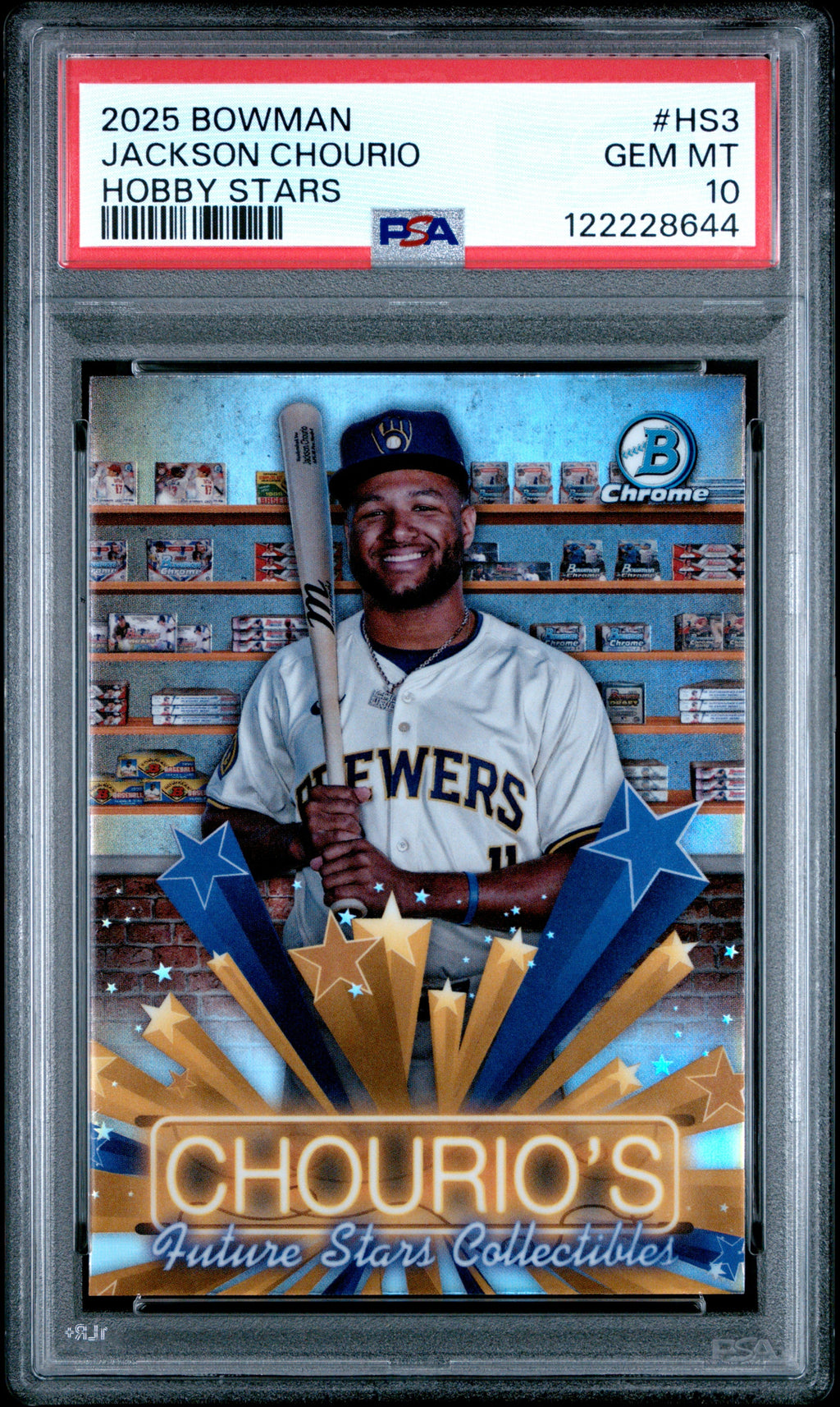 Graded 2025 Topps Bowman Jackson Chourio #HS3 Hobby Stars Baseball Card PSA 10 Gem Mint