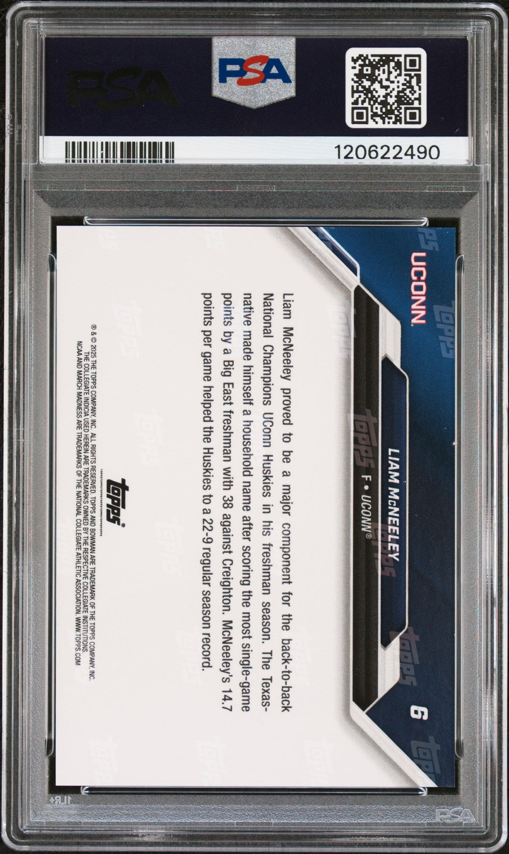 Graded 2025 Topps Bowman U Now Liam McNeeley #6 March Madness Black Rookie RC Basketball Card PSA 9 Mint