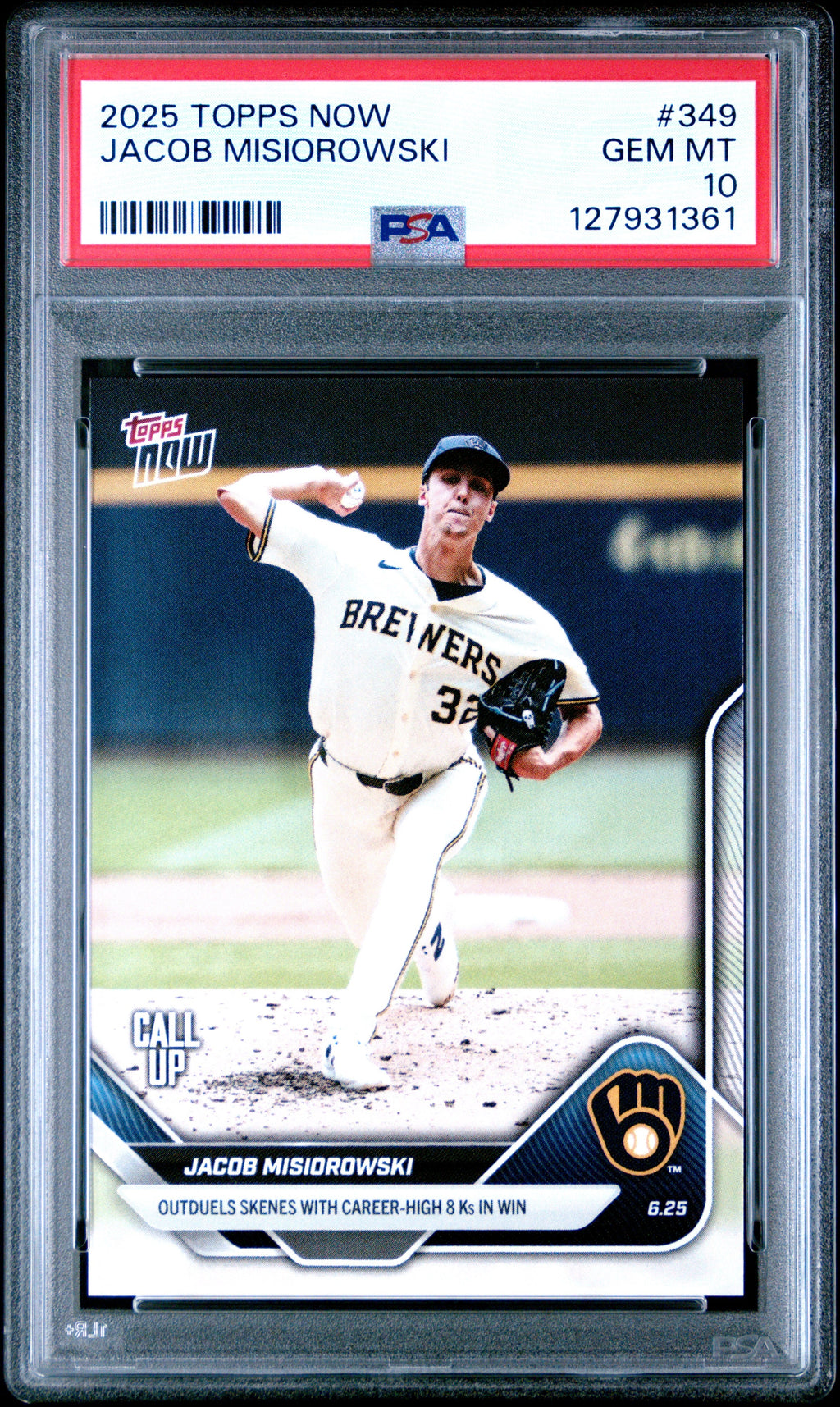 Graded 2025 Topps Now Jacob Misiorowski #349 Rookie RC Baseball Card PSA 10 Gem Mint