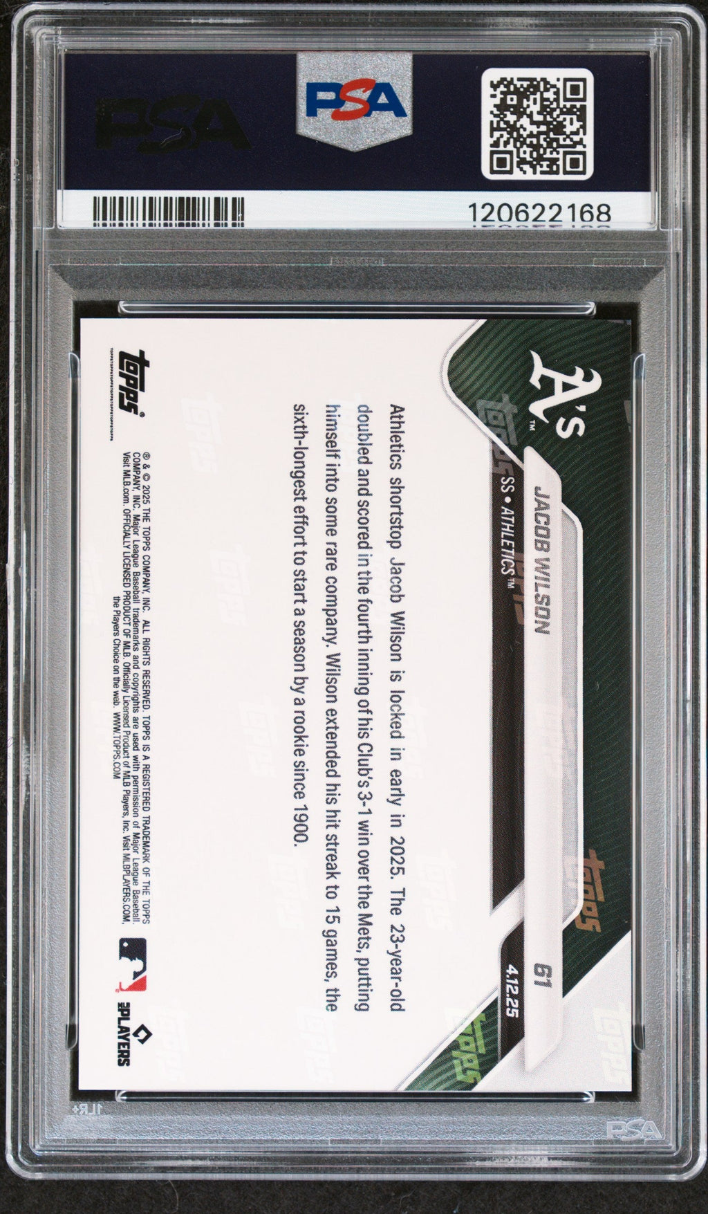 Graded 2025 Topps Now Jacob Wilson #61 Gold Foil /50 Rookie RC Baseball Card PSA 8 Near Mint