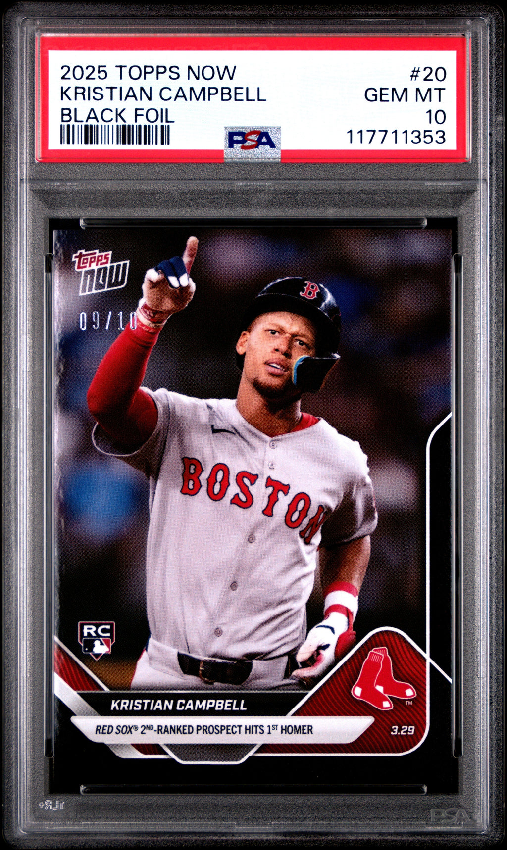 Graded 2025 Topps Now Kristian Campbell #20 Black Foil /10 Rookie RC Baseball Card PSA 10 Gem Mint