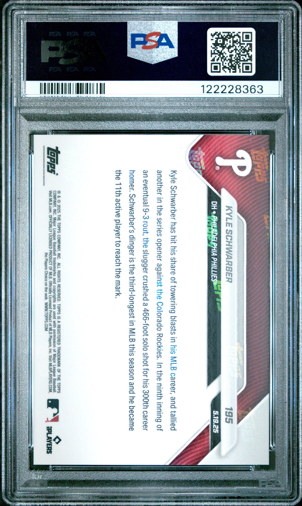 Graded 2025 Topps Now Kyle Schwarber #195 Baseball Card PSA 10 Gem Mint