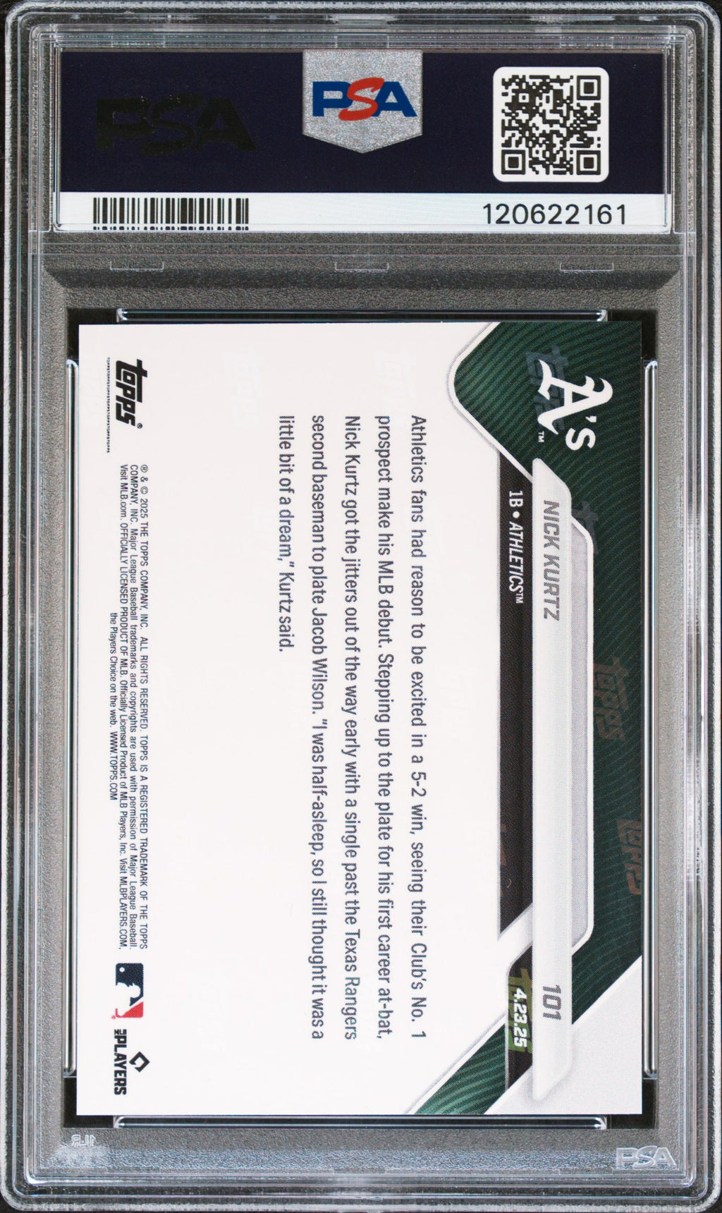 Graded 2025 Topps Now Nick Kurtz #101 Rookie RC Baseball Card PSA 9 Mint