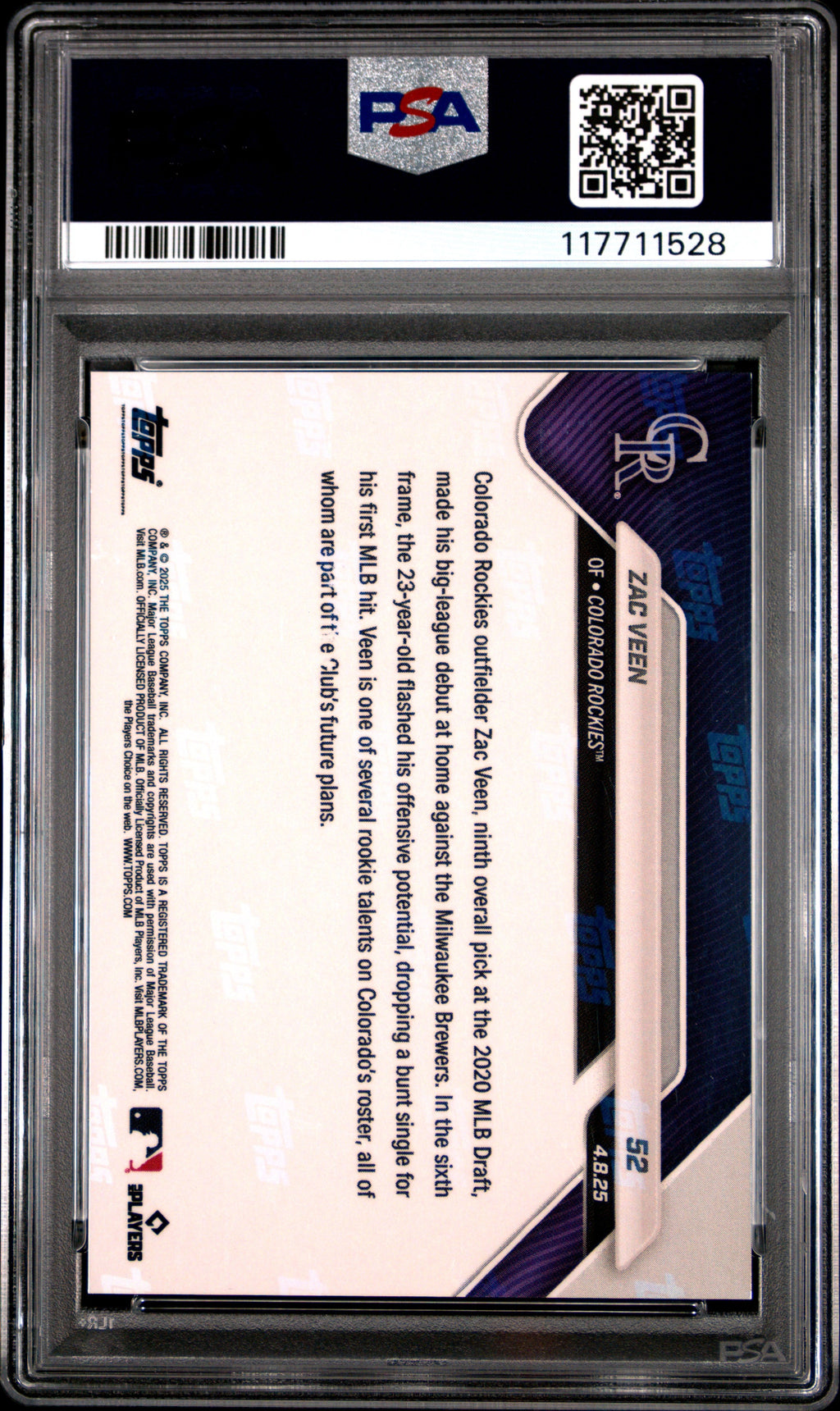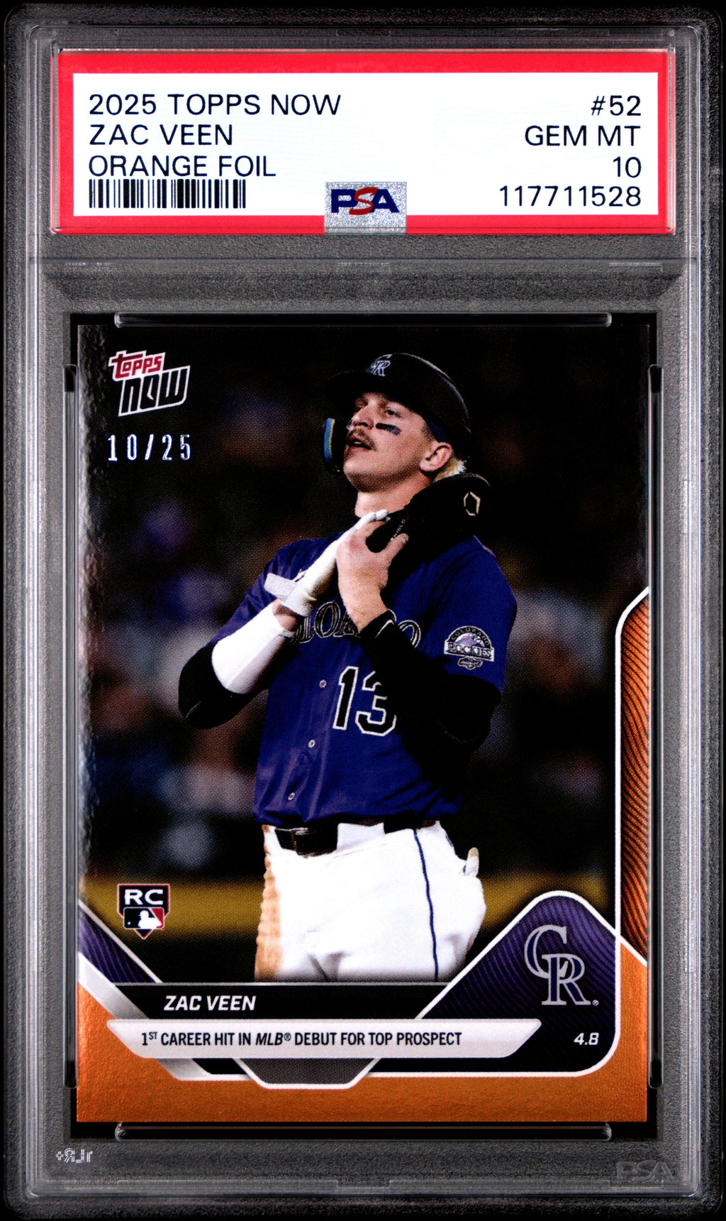 Graded 2025 Topps Now Zac Veen #52 Orange Foil /25 Rookie RC Baseball Card PSA 10 Gem Mint