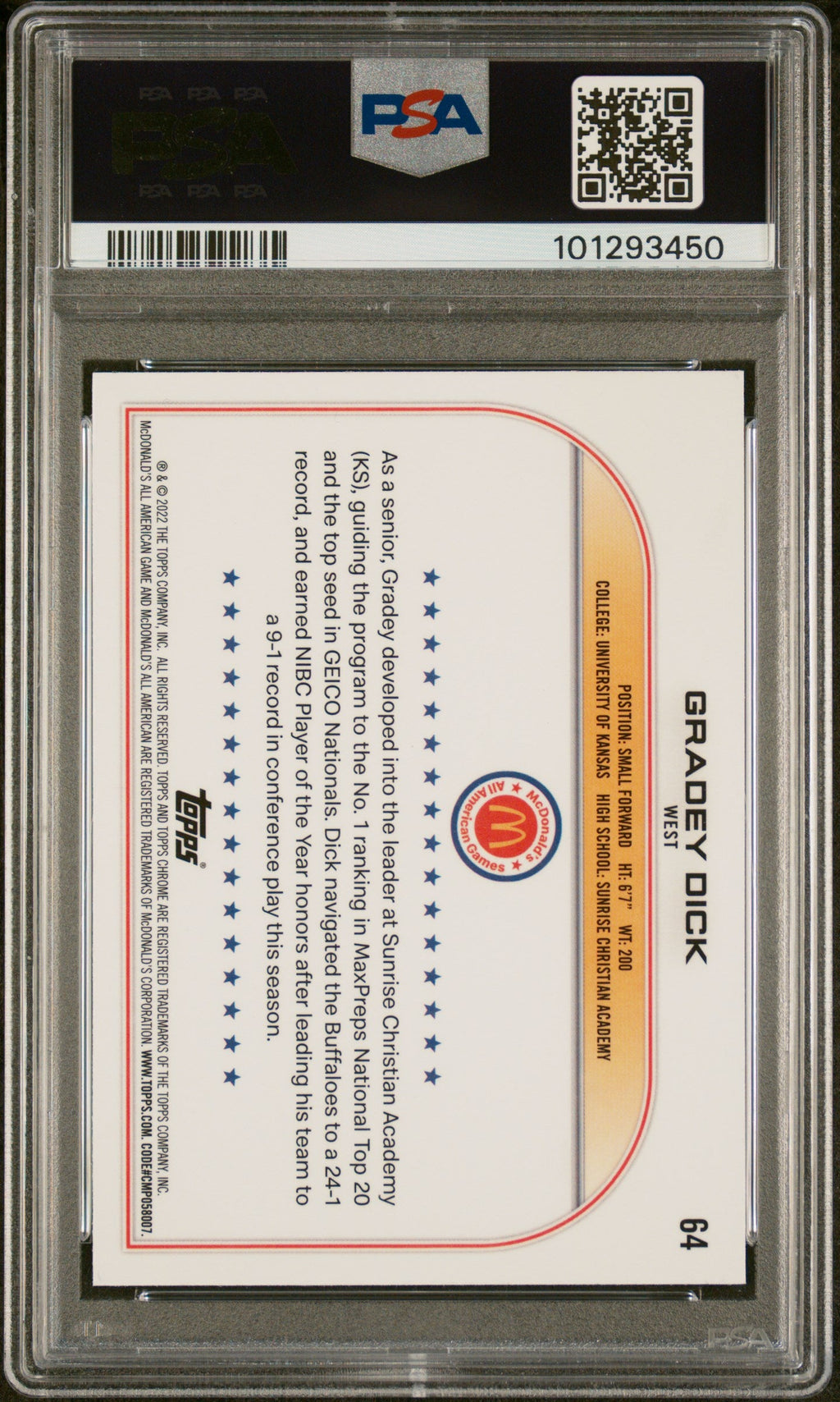 Card Number: 64 Category: Collectible Trading Cards Condition: Gem Mint Set: 2022 Topps Chrome Mcdonald'S All-American Type: Sports Trading Card Year: 2022 Grade: PSA 10 Certification #: 101293450