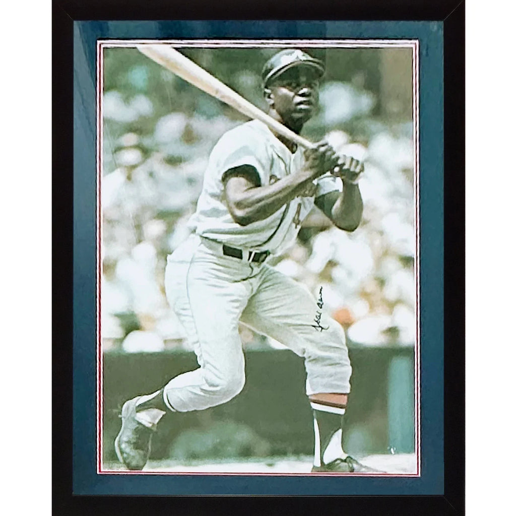 Celebrate the legend with this autographed Hank Aaron Atlanta Braves poster. Framed in deluxe style for a vintage feel and accompanied by a JSA letter of authenticity, this collectible is a must-have for any fan. Display it proudly and cherish a piece of Atlanta Braves history!