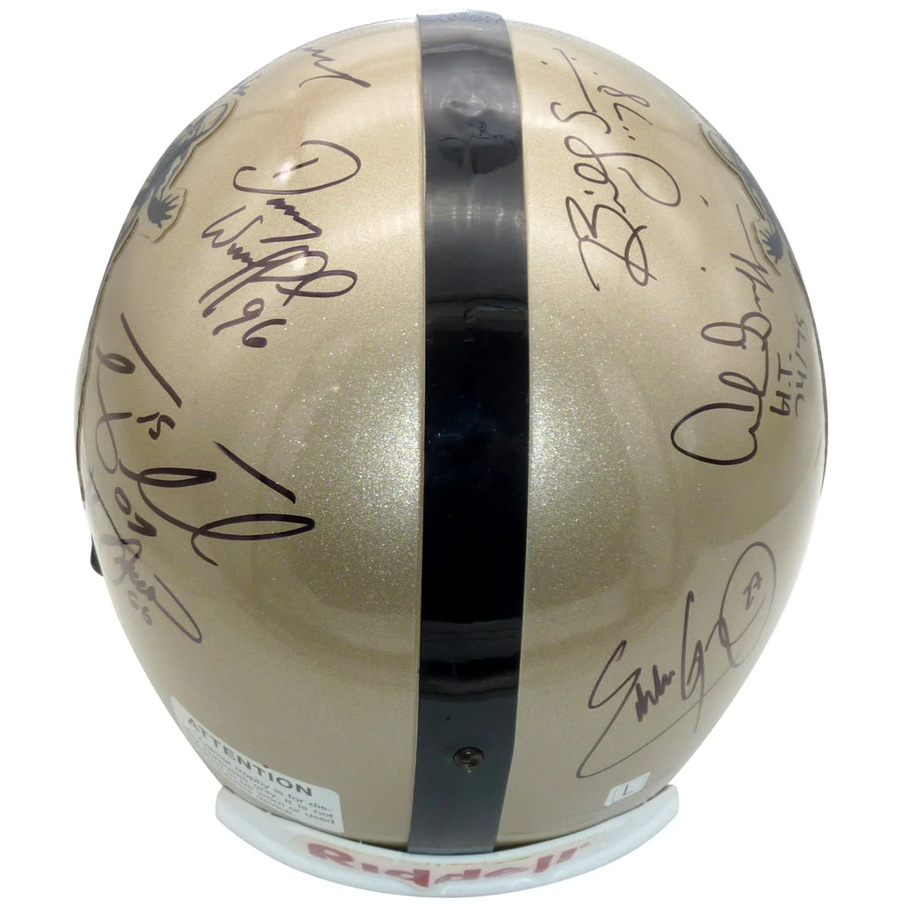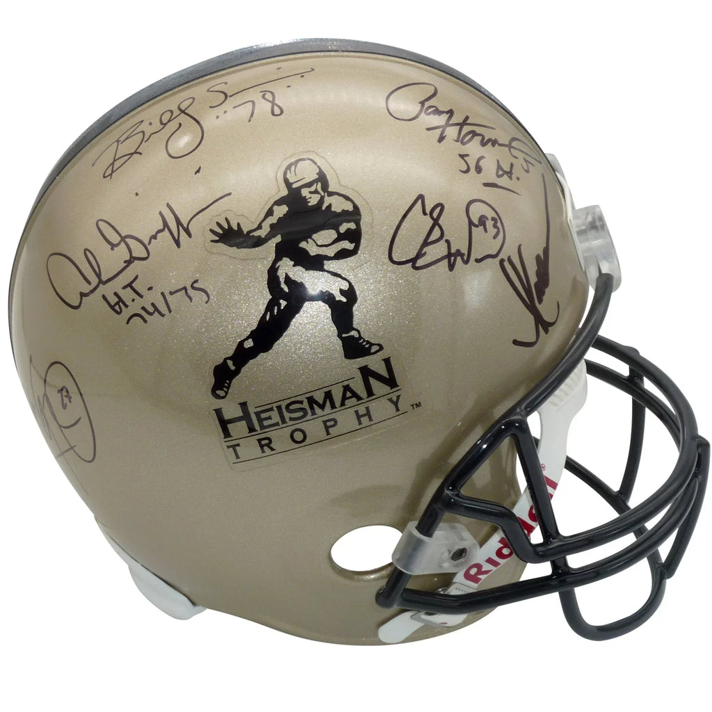 Own a piece of football history with this Heisman Trophy Winners Multi Autographed Helmet. Featuring 11 signatures from past winners, this full-size deluxe replica will inspire any fan and make a unique addition to any collection. Bring the passion of the game into your home today! It is accompanied by a Certificate of Authenticity from Palm Beach Autographs. A tamper-evident hologram will be affixed to the item. Each signature is witnessed by a member of our staff or comes out of a private signing.