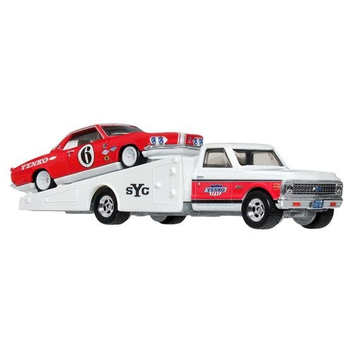 This 1:64 scale Hot Wheels car and hauler 2-pack is a must-have for adult collectors and racing enthusiasts around the world. The Team Transport vehicle can really load and unload and comes with a component car. Featuring realistic castings, hot decos and an abundance of the wheels that aficionados appreciate, the collection celebrates a diverse range of racing heritage and car culture. It includes some of the most popular castings ever produced (each sold separately) – they've been enduring favorites of collectors and racing fans of all ages! Pick your favorites to build a unique collection or collect them all!