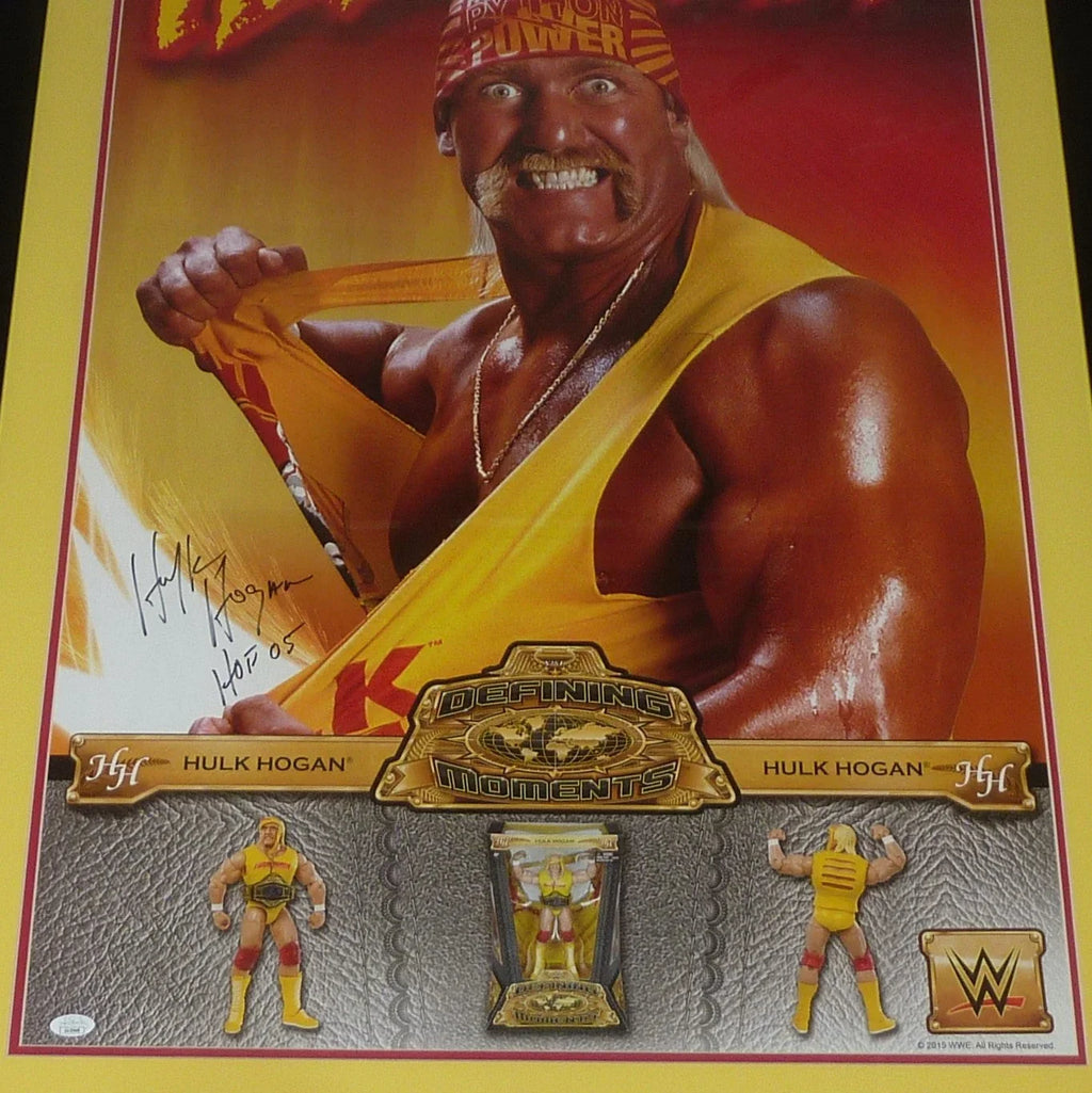 Get ready to bring the power and energy of Hulk Hogan into your home with this autographed WWE wrestling poster! With a deluxe frame and measuring 24x36, this Mattel poster captures defining moments in Hulk Hogan's career. Certified by JSA, this piece is a must-have for any true fan and collector. Show your passion and add this iconic piece to your collection today!