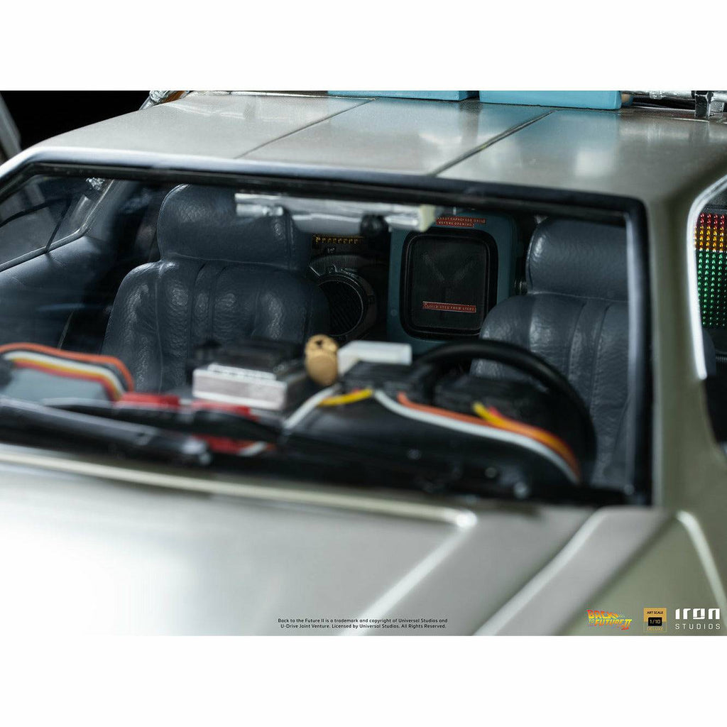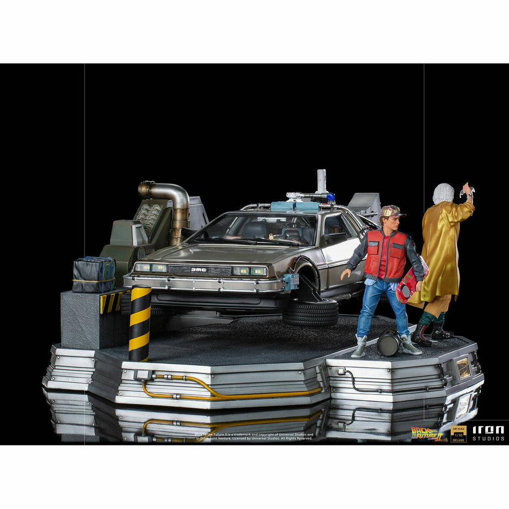 In the second part of the movie trilogy of the "Back to the Future" franchise, Marty McFly and Doc Brown travel to the imaginary future year of 2015 with the legendary DeLorean Time Machine, enhanced with a flight mechanism. The statues are the result of hard work of study and development by the Iron Studios team, which worked with maximum synergy to create this diorama that brings together all the nostalgia of the movie and the pop culture of the 1980s.