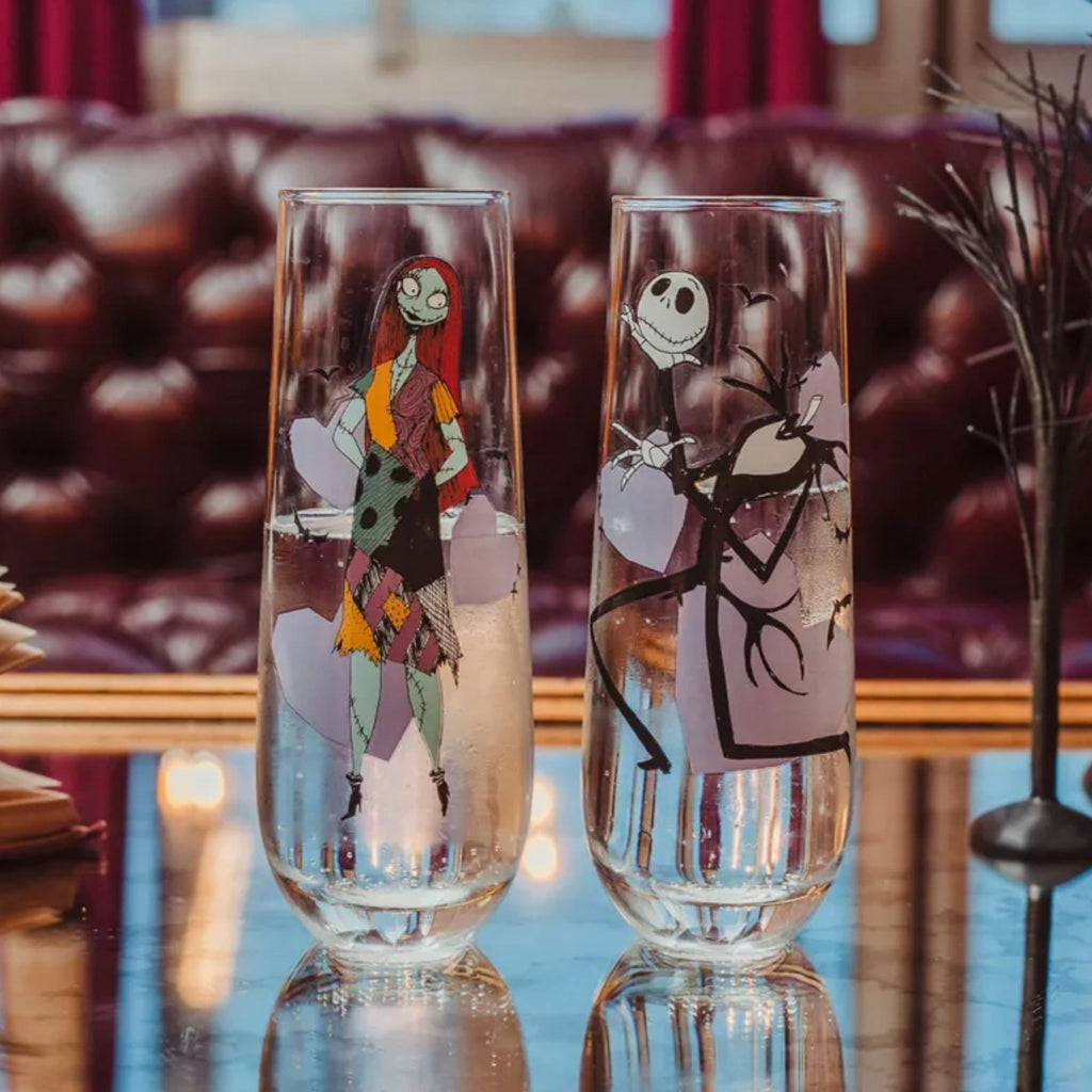 Jack Skellington and Sally Nightmare Before Christmas 9oz Fluted Glassware Set of 2