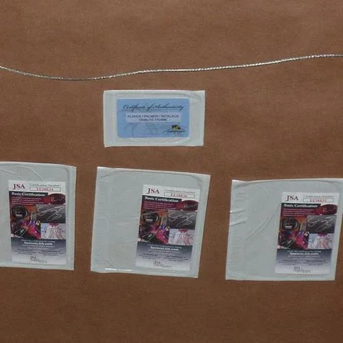 This deluxe framed golf piece features autographs from the legendary "Big 3" golfers: Jack Nicklaus, Arnold Palmer, and Gary Player. Certified by JSA, this piece is a must-have for any golf enthusiast. Showcase this iconic trio in your home or office and elevate your golf collection to the next level.