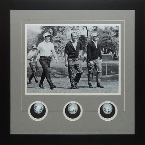 Own a piece of golf history with this beautifully crafted shadowbox frame featuring autographs from legends Jack Nicklaus, Arnold Palmer, and Gary Player. Guaranteed authenticity with JSA Full Letters. Perfect for any golf fan or collector. Don't miss out on this unique and inspiring addition to your home or office.