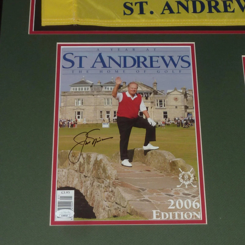 Capture a piece of golf history with this deluxe framed program from the legendary Jack Nicklaus, featuring his signature from the 2005 British Open at St Andrews and authenticated by JSA. The perfect addition to any fan's collection, this autographed program comes with a flag and photo, adding a personal touch to your display. Don't miss out on this truly special item.