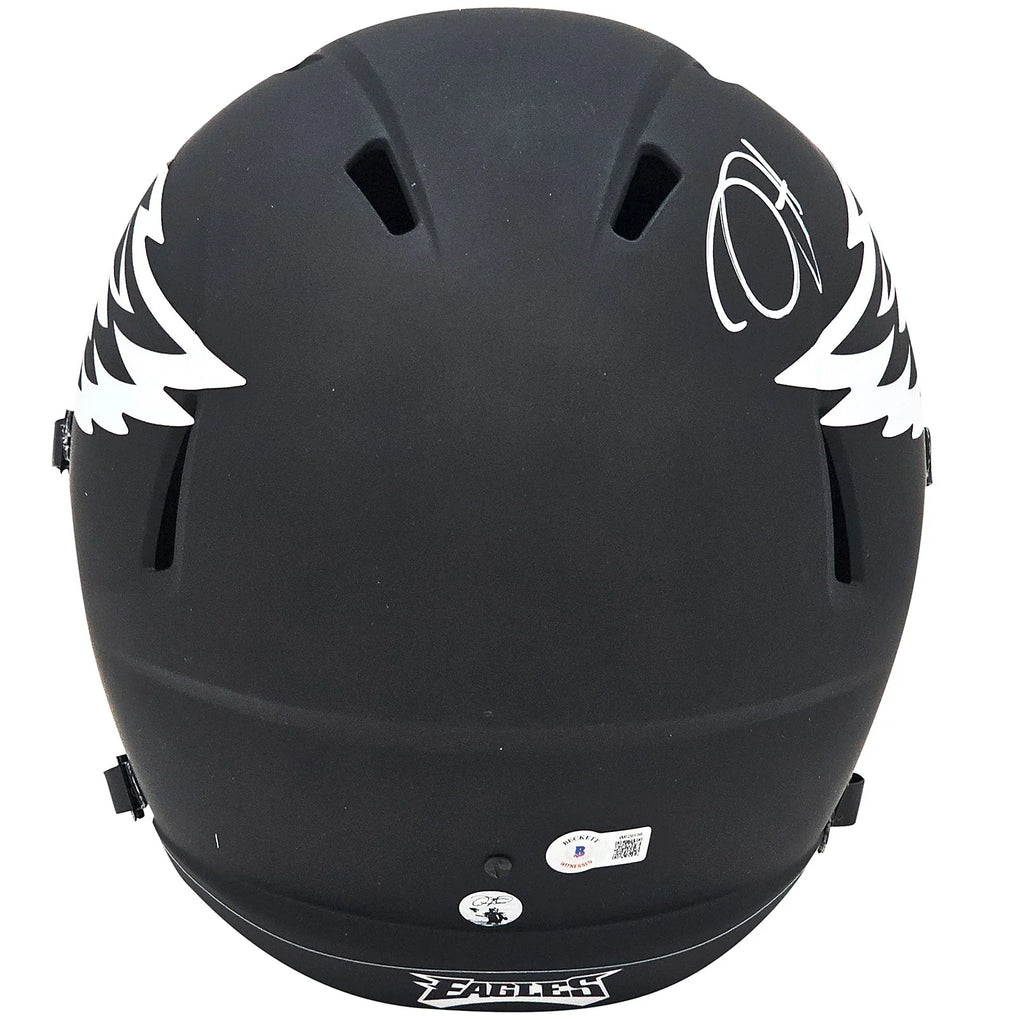 Elevate your Eagles pride with an autographed deluxe helmet from quarterback Jalen Hurts! Featuring the iconic eclipse alternate design, this full-size replica helmet is a must-have for any fan. Guaranteed authentic by JSA, this is a rare and valuable addition to any collection. Fly high with Hurts today!