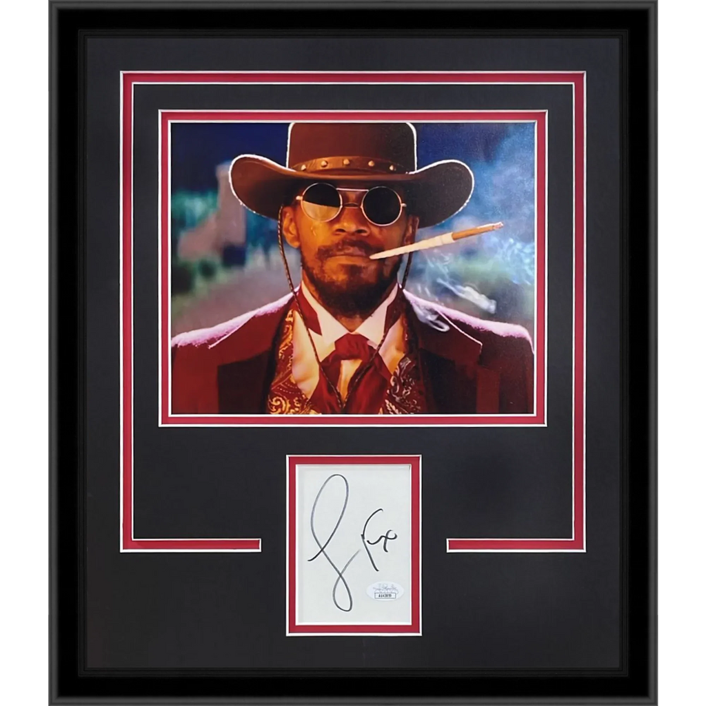 Own a piece of cinematic history with our Jamie Foxx Autographed Django Unchained Signature Series Frame, certified by JSA. This stunning frame showcases Jamie Foxx's signature and is a must-have for any fan of the film. Display it proudly and relive the iconic moments of Django Unchained.