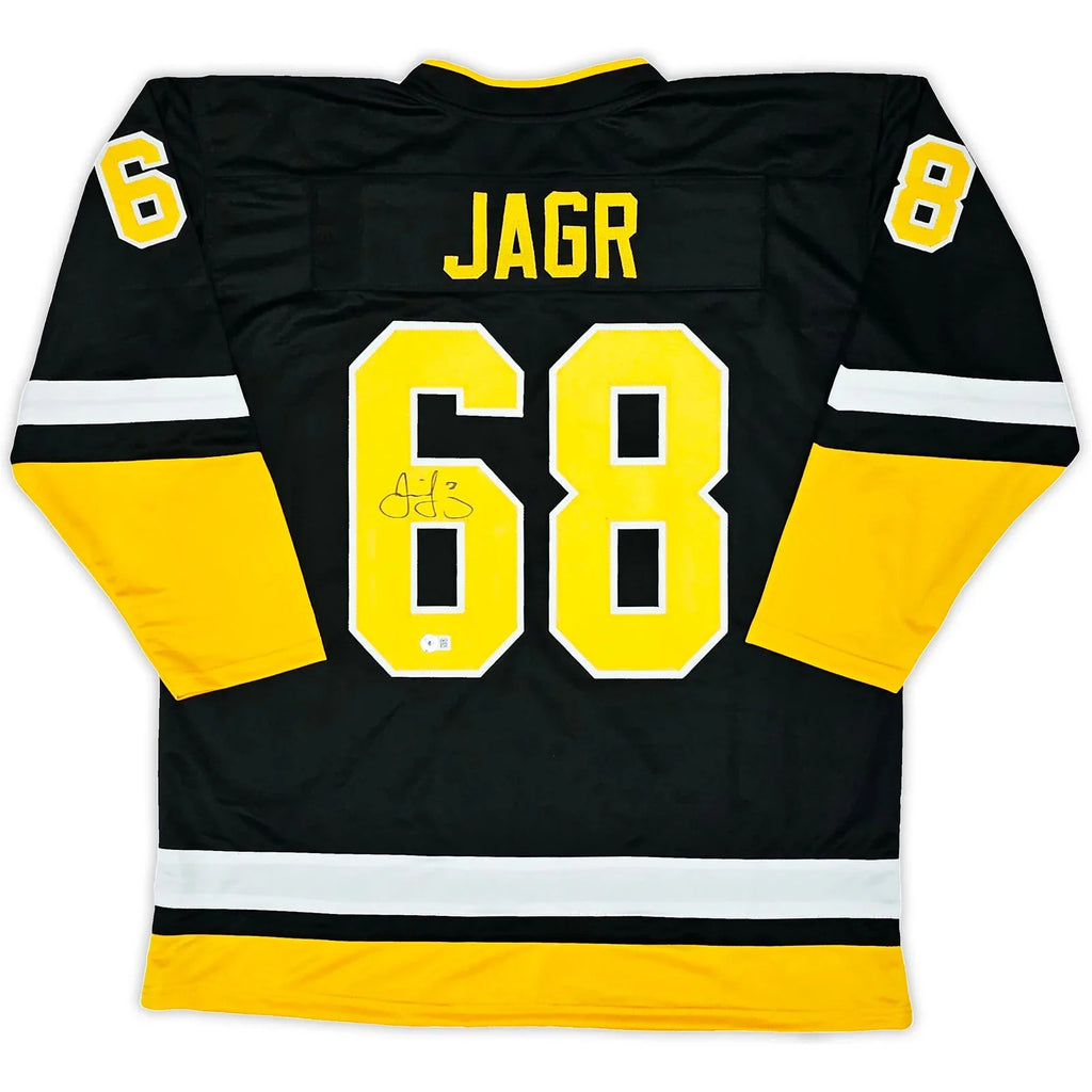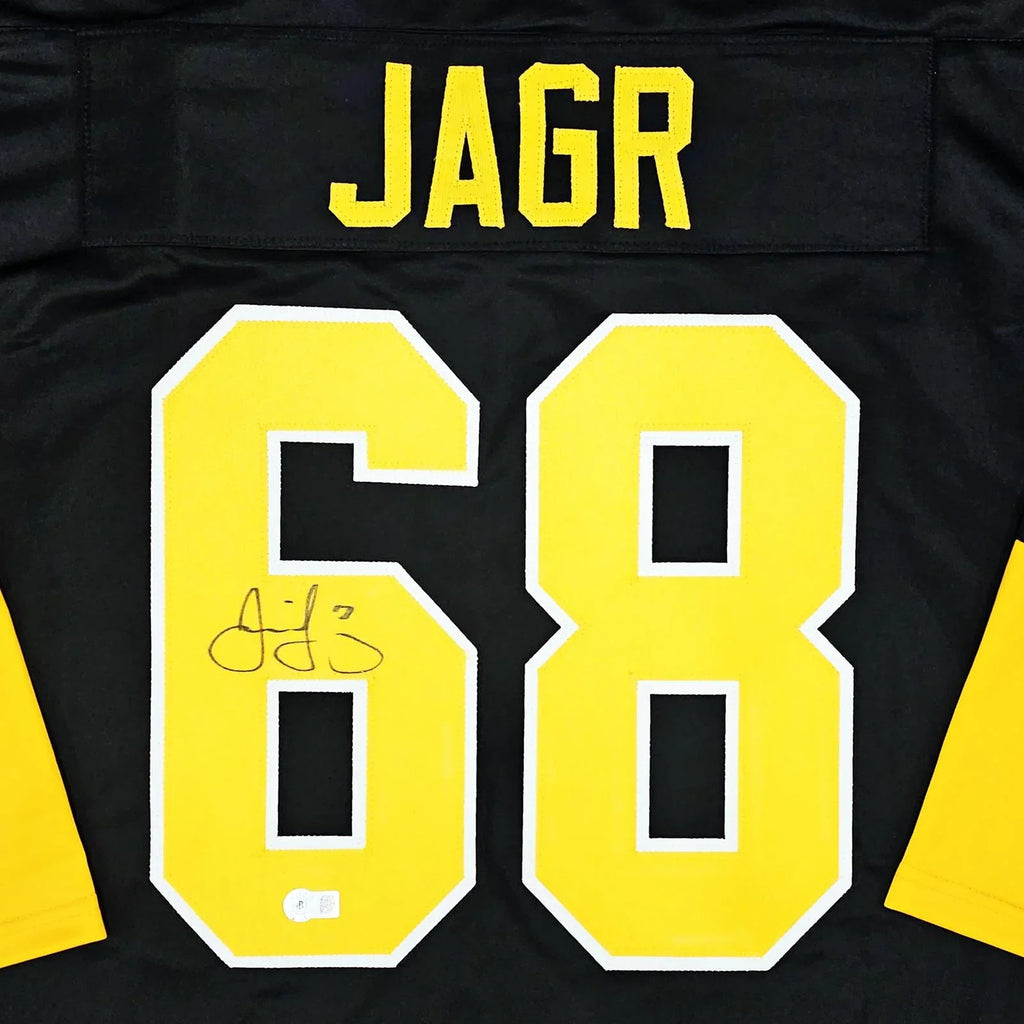 Own a piece of hockey history with this autographed Jaromir Jagr Pittsburgh custom jersey! The signature is authenticated by Beckett, guaranteeing its authenticity. Show your love for the game and the legendary #68 with this unique custom jersey.