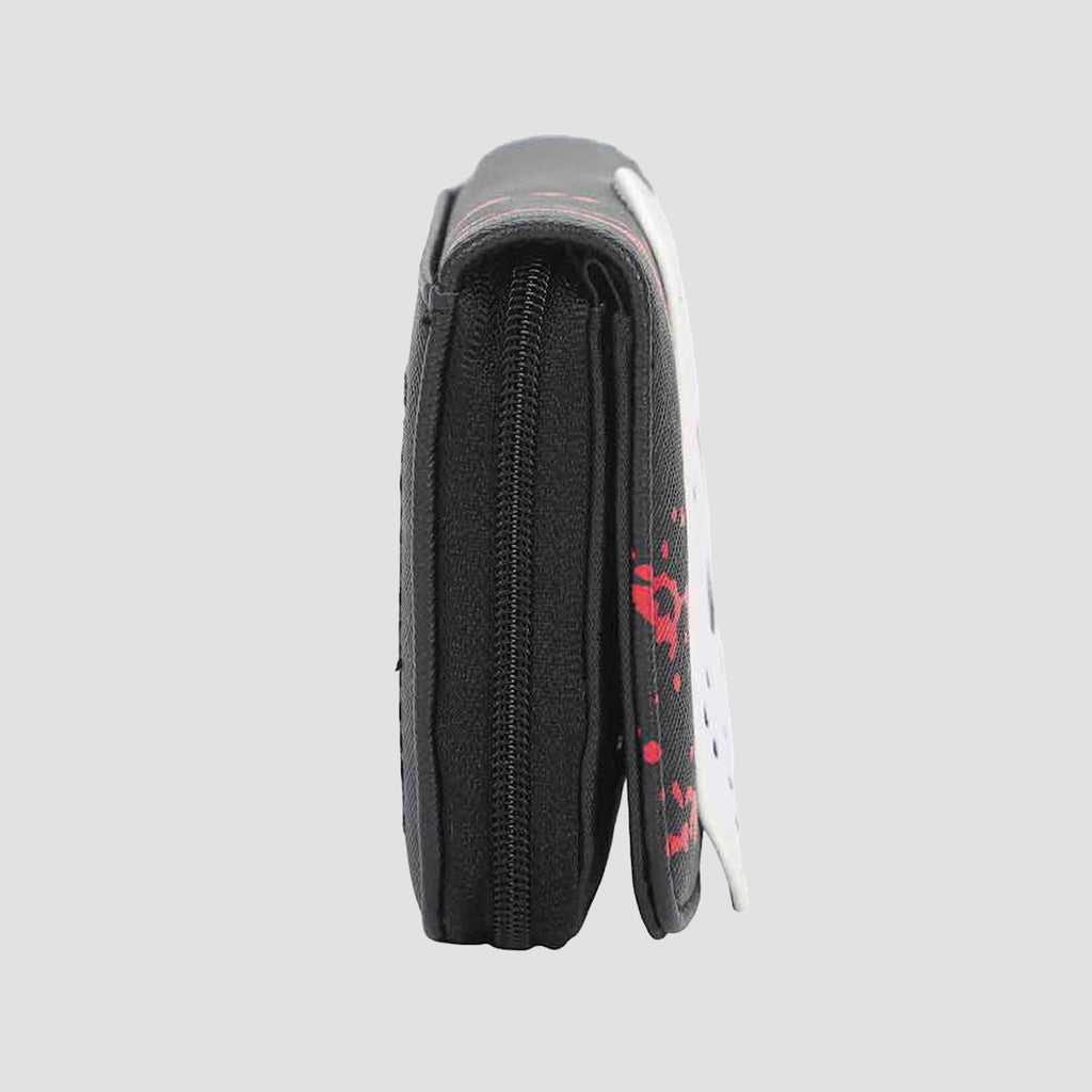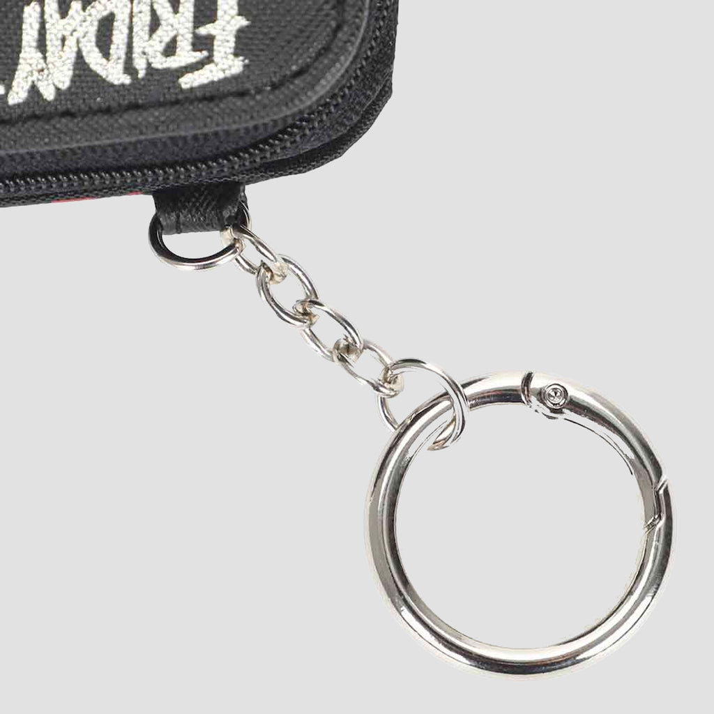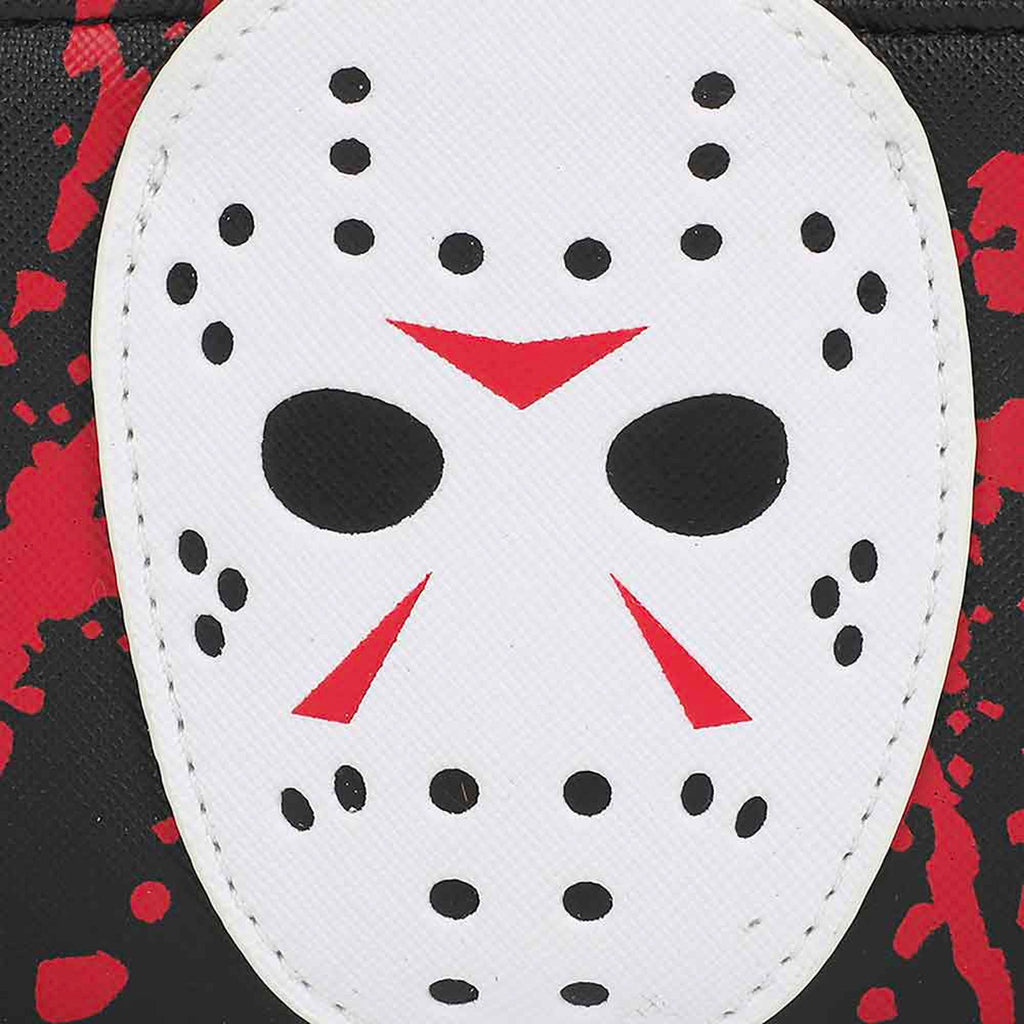 Show off your love of slasher films with mini zip-around wallet featuring Jason Voorhees from the Friday the 13th movies! His white hockey mask dominates the front of this wallet, and the title of the series Friday the 13th is printed on the reverse over a clear ID slot.