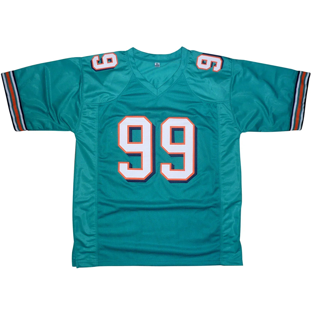 Show off your love for the Miami Dolphins with this autographed Jason Taylor custom jersey. This teal jersey features Taylor's iconic #99 and is signed by the NFL Hall of Famer himself. With a JSA authentication, this jersey is a must-have for any passionate fan.