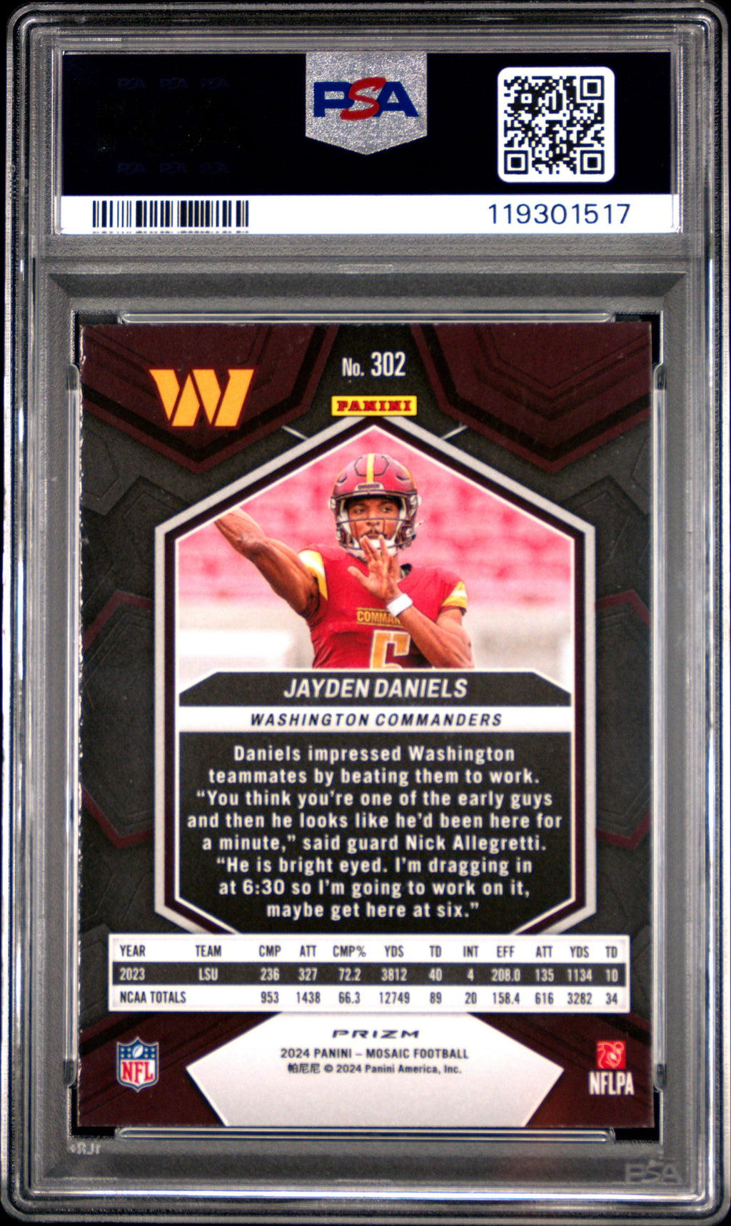 Card Number: 302 Category: Collectible Trading Cards Condition: Mint Set: 2024 Panini Mosaic Type: Sports Trading Card Year: 2024 Grade: PSA 9 Certification #: 119301517