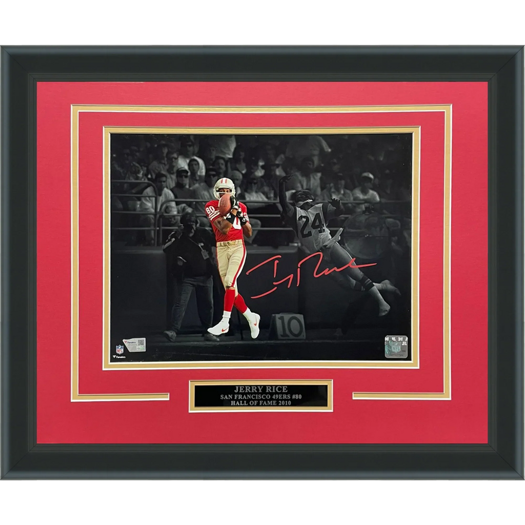 Own a piece of history with this deluxe framed photo featuring legendary Jerry Rice in action as a San Francisco 49er! Hand-signed and authenticated by Fanatics, it's a must-have for any fan or collector. Display it proudly and relive the excitement of one of the greatest NFL players.