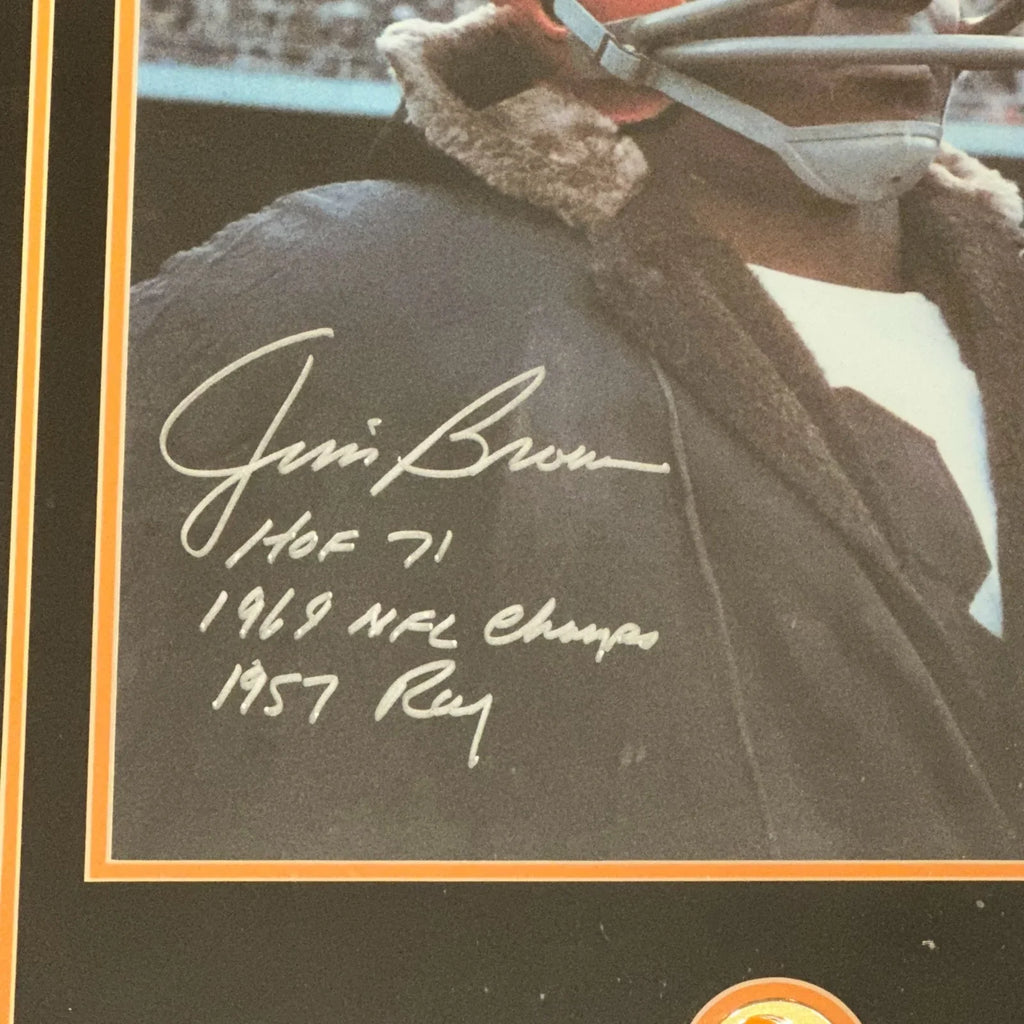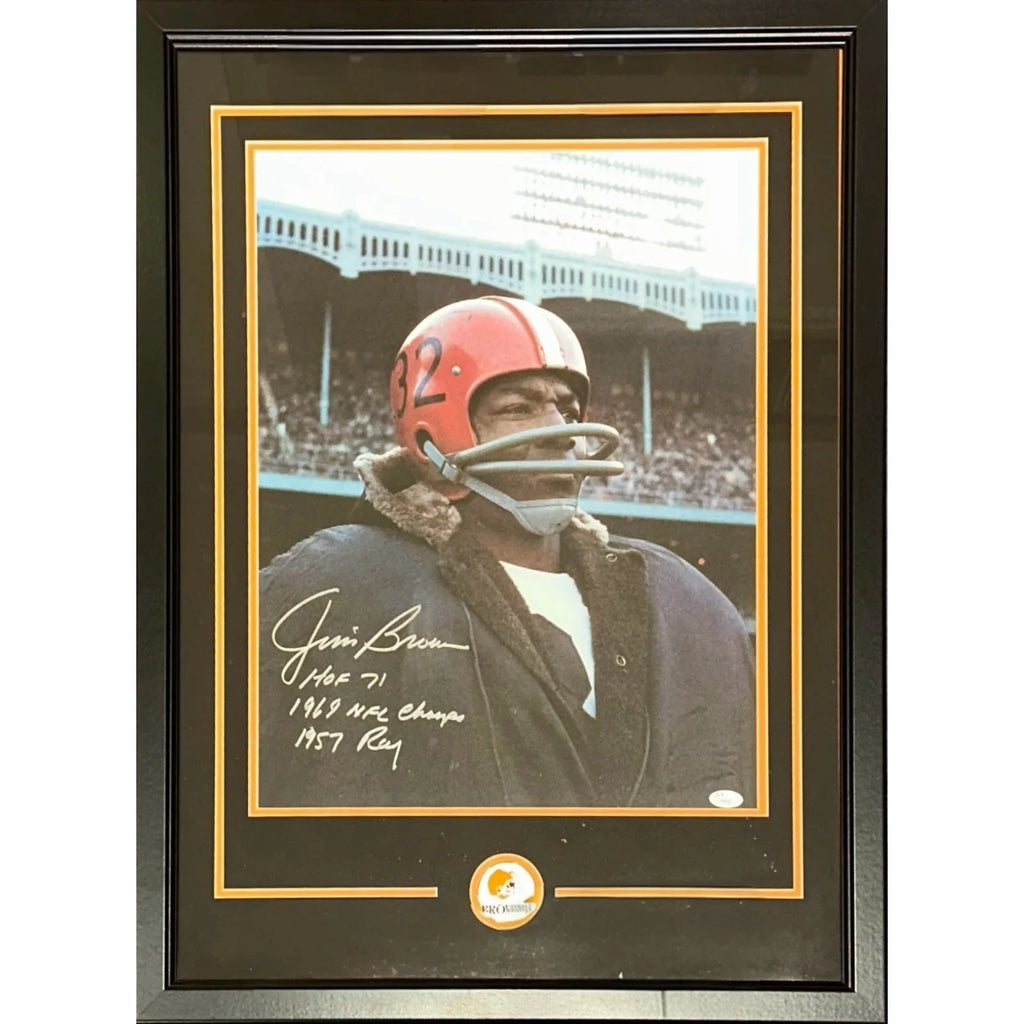 Celebrate the legendary legacy of Jim Brown and the Cleveland Browns with this deluxe framed 16x20 photo. Featuring an authentic autograph and inscriptions, this piece is certified by JSA and makes for a stunning addition to any sports collection. Relive the excitement of the gridiron every time you gaze upon this piece!