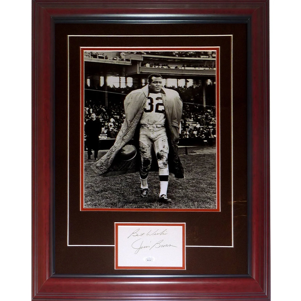 Experience the greatness of Jim Brown with this deluxe framed 11x14 photo, featuring his authentic autograph verified by JSA. Perfect for any Cleveland Browns fan, this piece is a must-have for any sports enthusiast. Bring the excitement and energy of the legendary player into your home with this unique piece!