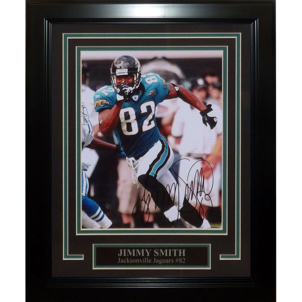 Own a piece of NFL history with this deluxe framed 8x10 photo of the legendary Jimmy Smith, hand-signed by the star himself. Perfect for any Jacksonville Jaguars fan, this photo is beautifully presented in a deluxe frame and is a must-have addition to any memorabilia collection. Each signature is witnessed by a member of our staff or comes out of a private signing.