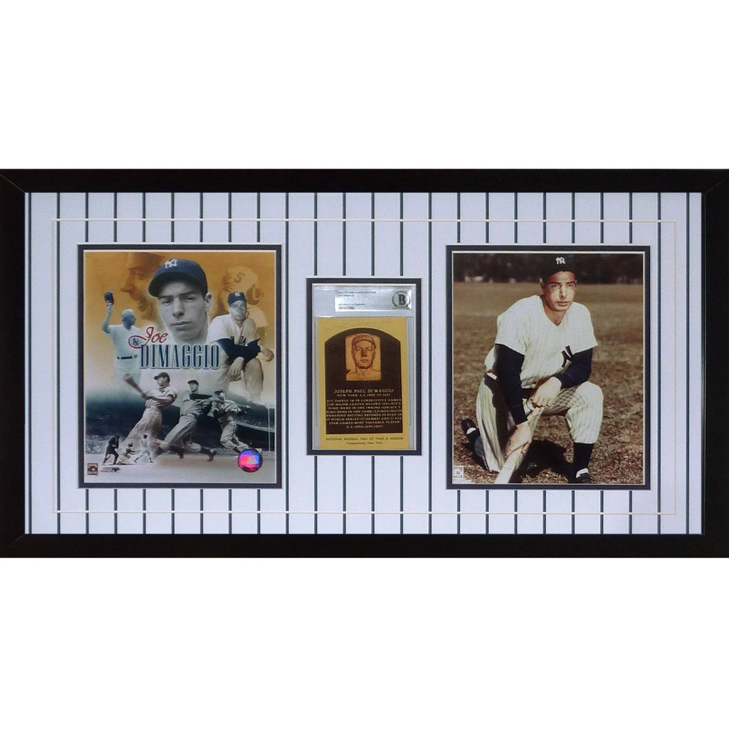 Own a piece of baseball history with this Joe Dimaggio autographed New York Yankees Hall of Fame postcard framed piece. Includes 8x10 photos and a Beckett authentication for added value. Show off your love for the sport with this deluxe piece that will make any fan envious!